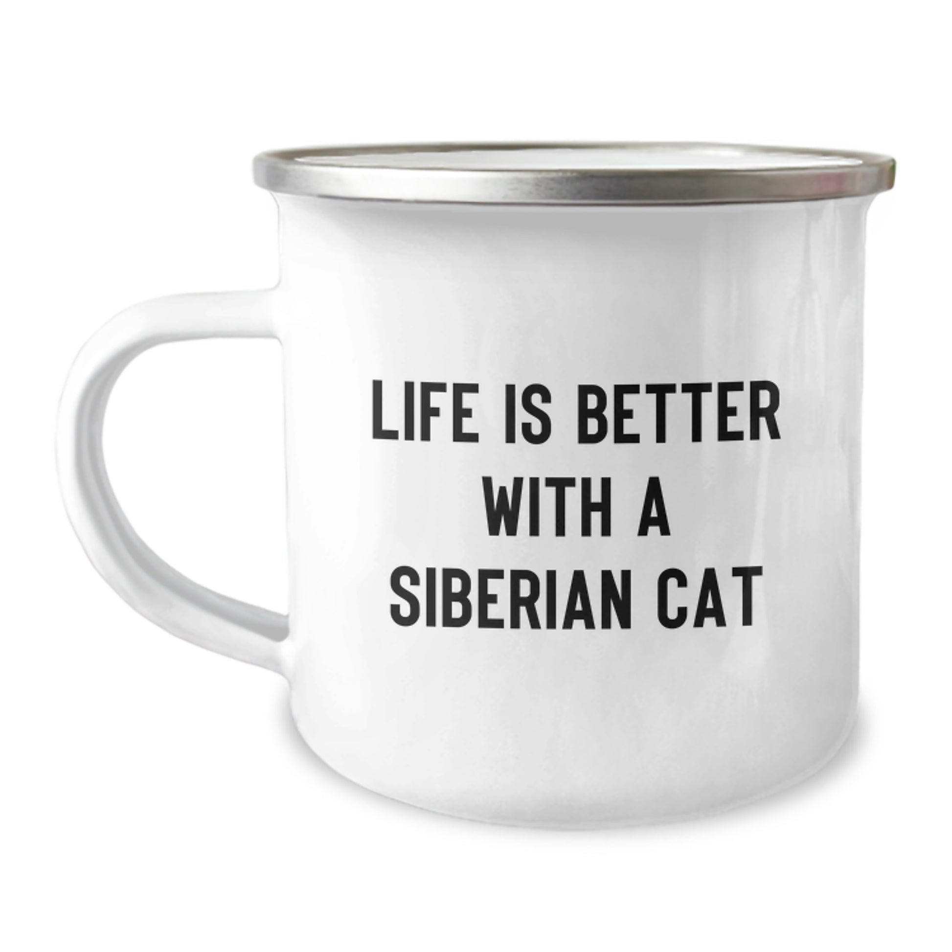 Are you a Siberian Cat enthusiast or looking for a unique gift for a friend who loves Siberian Cats? Look no further! Our 'Life Is Better With A Siberian Cat' Camping Mug is the perfect way to share your love for Siberian Cats with the world. Made of high-quality stainless steel with an enamel finish, this 12 oz mug is sturdy and easy to clean. The quote 'Life Is Better With A Siberian Cat' is a funny and inspirational message that will bring a smile to the face of any Siberian Cat lover. Whether you're a student celebrating graduation or a family member looking for a thoughtful gift, this mug is sure to delight. So why not treat yourself or a loved one to a fun and unique Siberian Cat gift? Don't miss out and make their day a little brighter!