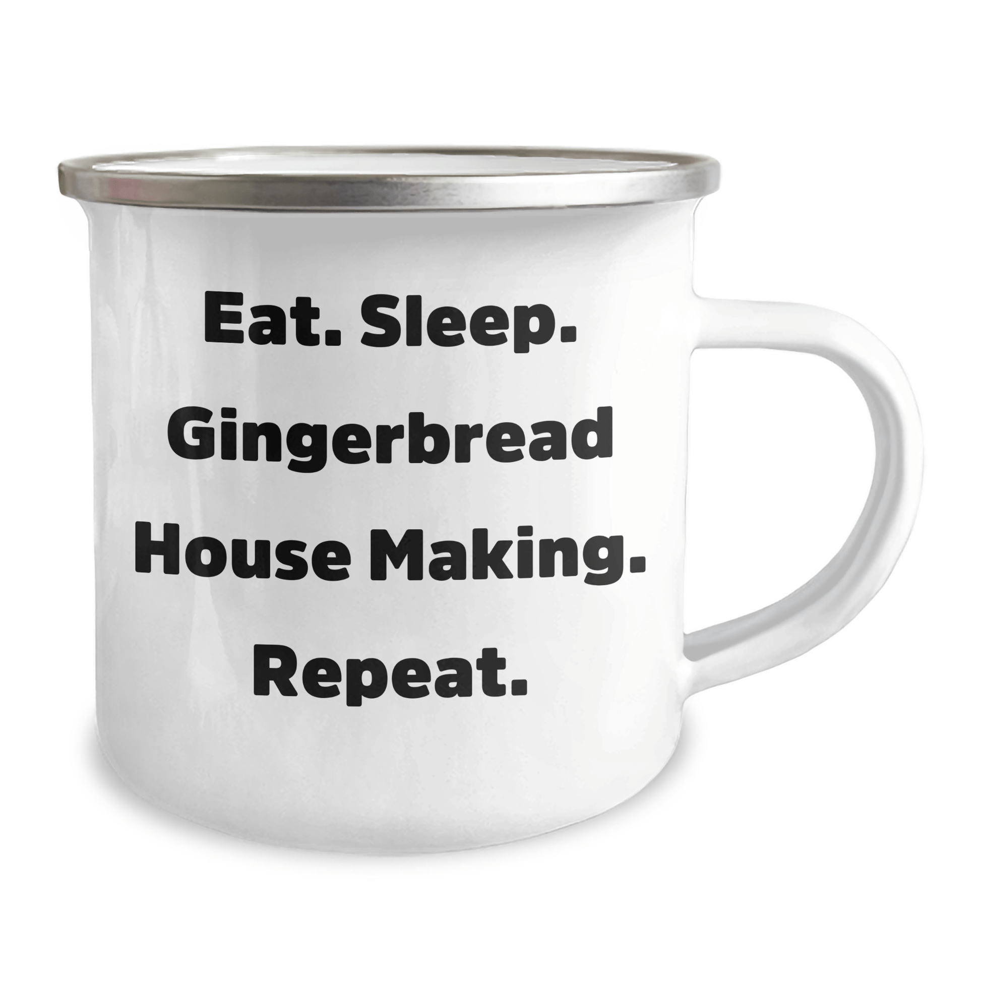 Are you a die-hard gingerbread house making enthusiast or searching for a unique gift for a fellow gingerbread house making addict? Look no further! This Eat. Sleep. Gingerbread House Making. Repeat. Camping Mug is the ideal gift for graduation, and it's sure to bring a smile to the face of any gingerbread house making aficionado. Whether you're a family member, friend, or coworker, this gift is sure to be a hit. The quote 'Eat. Sleep. Gingerbread House Making. Repeat.' perfectly captures the essence of gingerbread house making, and the camping mug is a fun and functional way to enjoy your favorite beverage while indulging in your gingerbread house making passion.