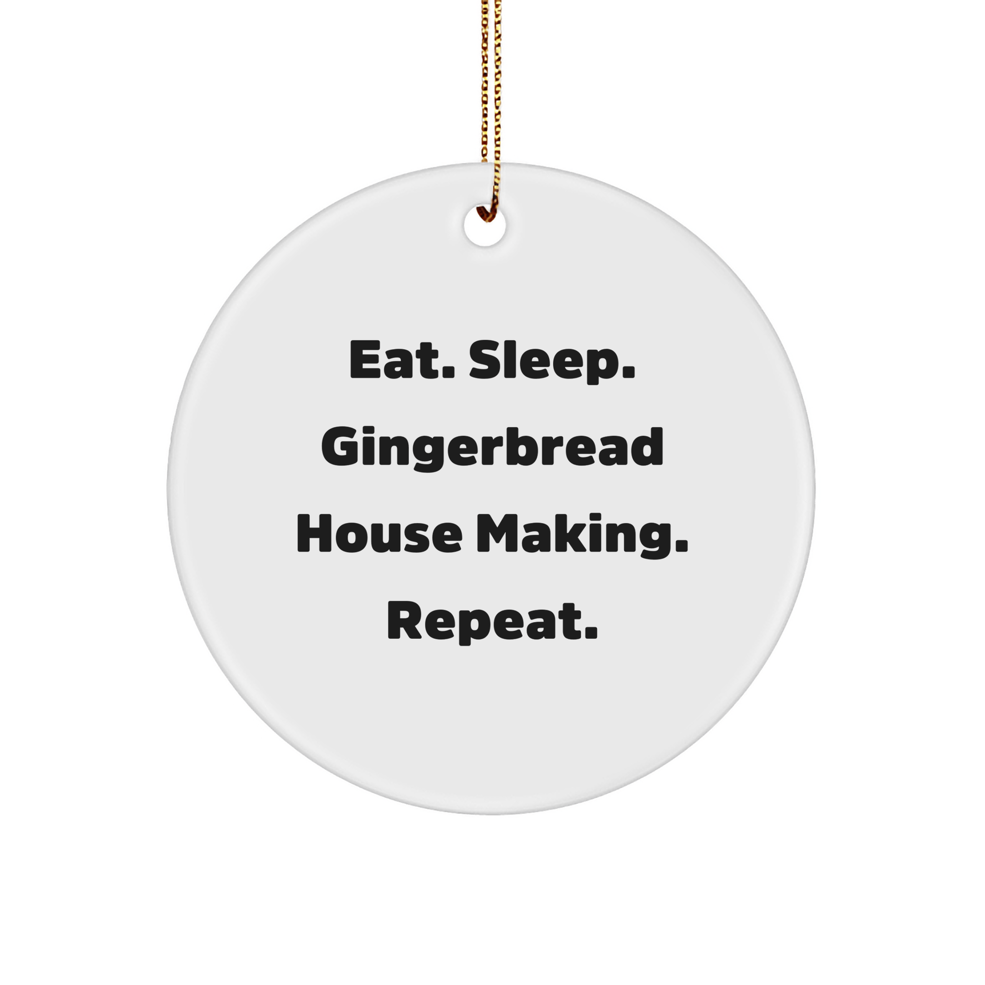 This Christmas, give the gift of Gingerbread House Making to yourself or someone special. Our Circle Ornament is a thoughtful and festive way to spread cheer and joy. So go ahead, get creative, and make some sweet memories with this delightful ornament. Don't miss out and get ready to Eat. Sleep. Gingerbread House Making. Repeat.!