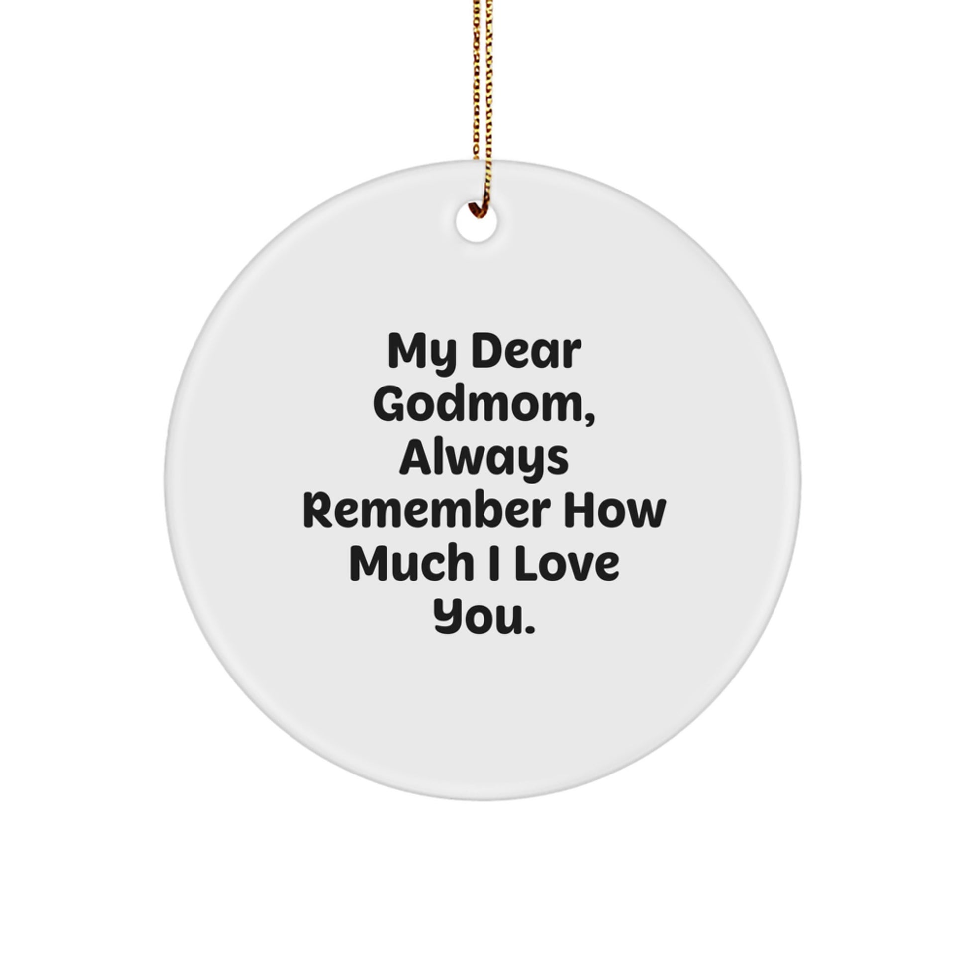 - Make a thoughtful and personalized gift for your Godmom with this beautiful Circle Ornament, featuring the quote 'My Dear Godmom, Always Remember How Much I Love You.' - a heartfelt message that will surely touch her heart.