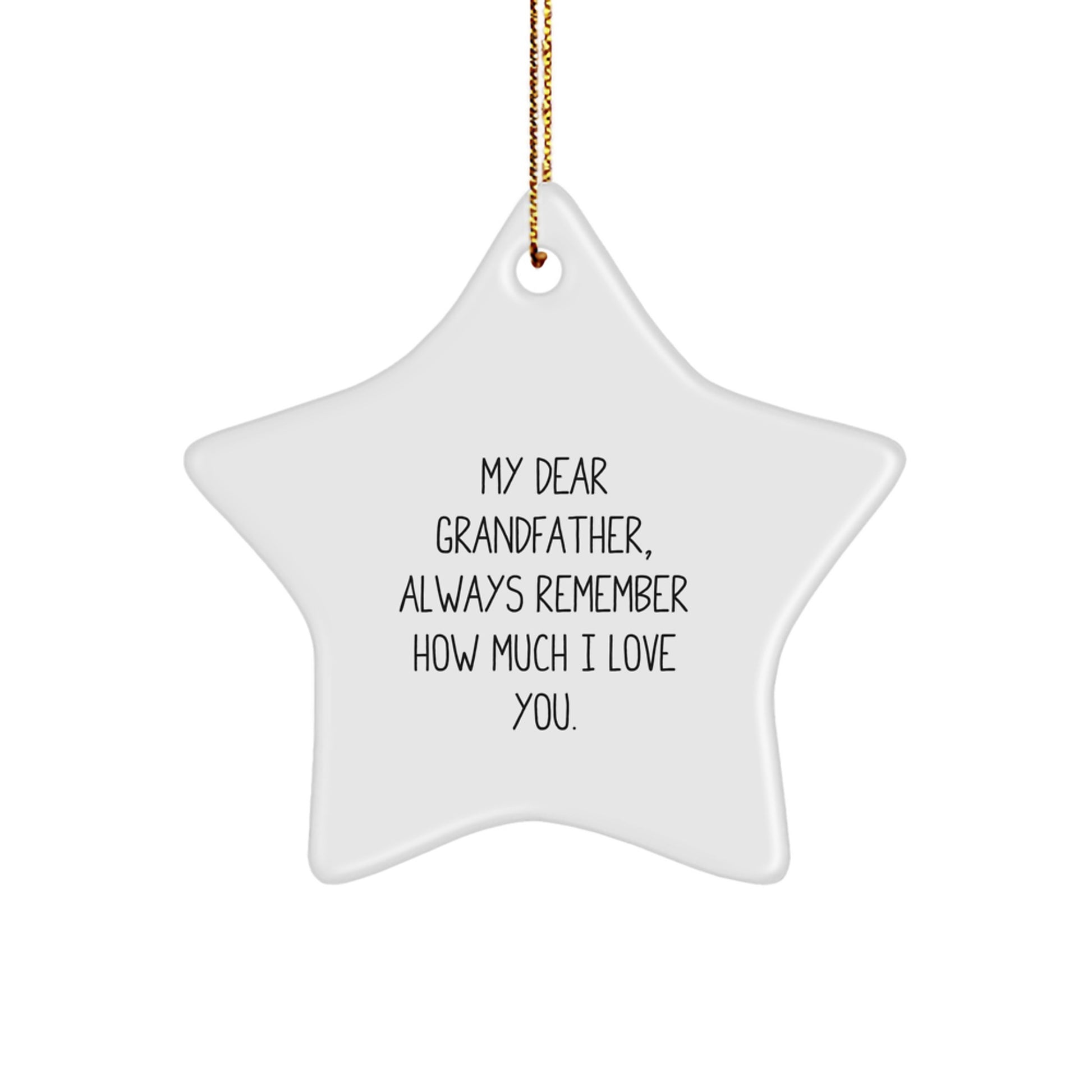 Are you looking for a meaningful gift for your grandfather? Look no further! This beautiful Star Ornament is a thoughtful way to show your grandfather how much you care. The quote 'My Dear Grandfather, Always Remember How Much I Love You' is a heartfelt reminder of the love and appreciation you have for him.