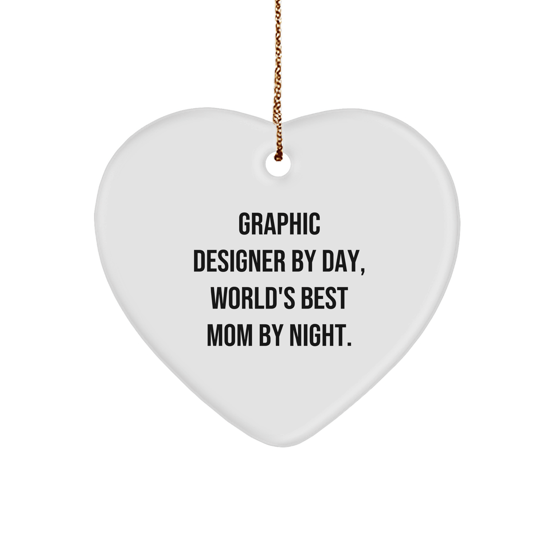 - Unique heart ornament with funny quote 'Graphic Designer by Day, World's Best Mom by Night' - A ideal gift for any graphic designer who is also a mom