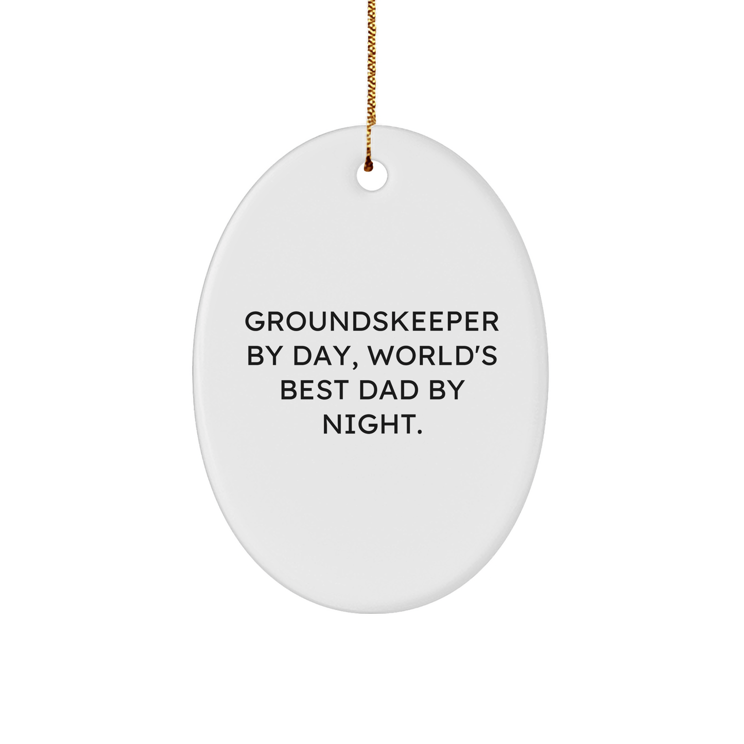 Are you a groundskeeper enthusiast or looking for a unique gift for the groundskeeper in your life? Look no further! This funny oval ornament is the perfect way to show your appreciation for all they do. By day, they may keep the grounds tidy, but by night, they're the world's best dad.