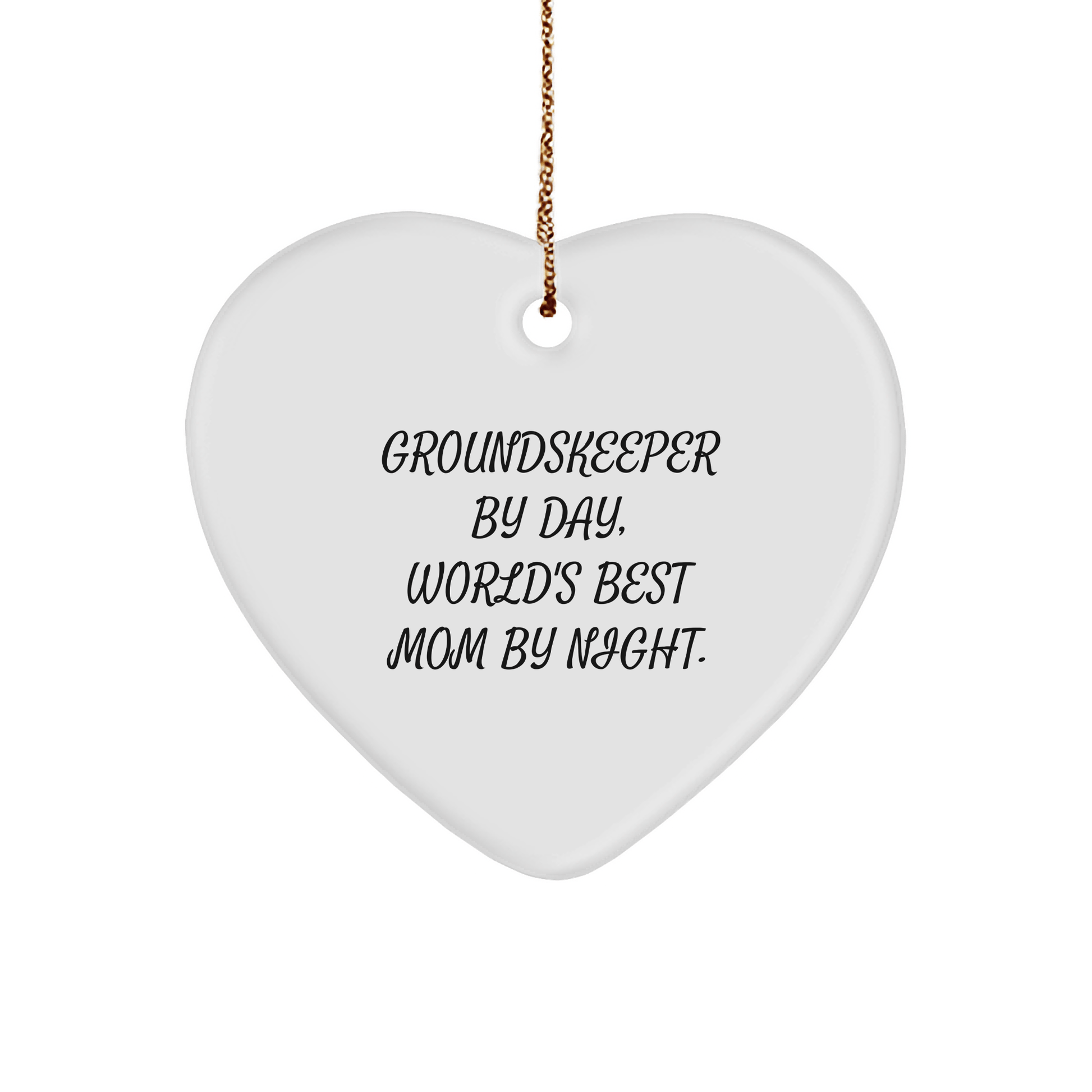 - This Heart Ornament is a unique and funny way to show your appreciation for the groundskeeper in your life, making it a great gift for friends, family, or coworkers. 'By day, they may be a groundskeeper, but by night, they're the world's best mom!' says the quote on this charming ornament. The vibrant colors and sturdy design make it a great choice for households with children or pets.
