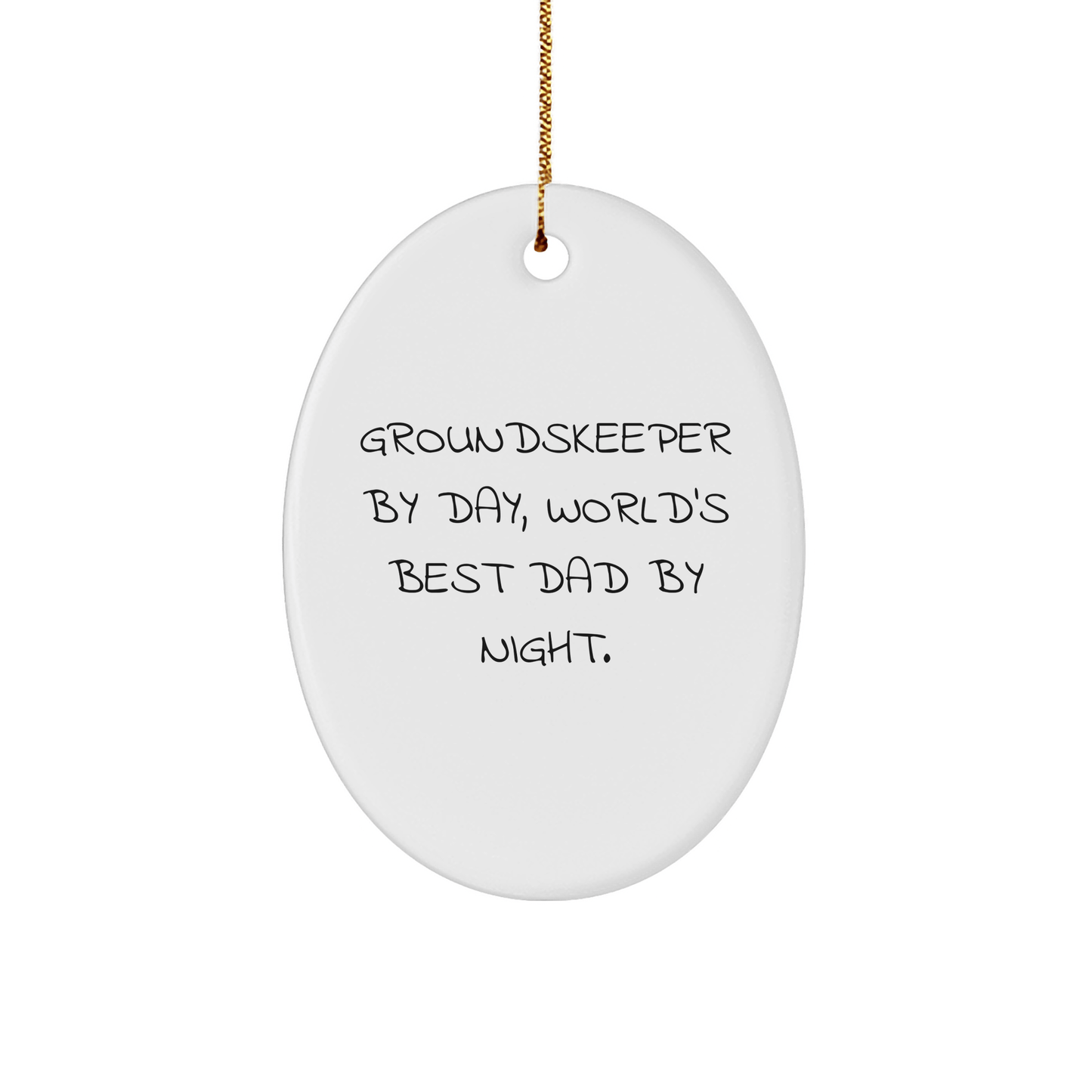 Are you a groundskeeper enthusiast or looking for a special gift for the groundskeeper in your life? Look no further! This Oval Ornament is a thoughtful and unique present that showcases the funny quote 'groundskeeper By Day, World's Best Dad By Night.' in a beautiful white and gold design.