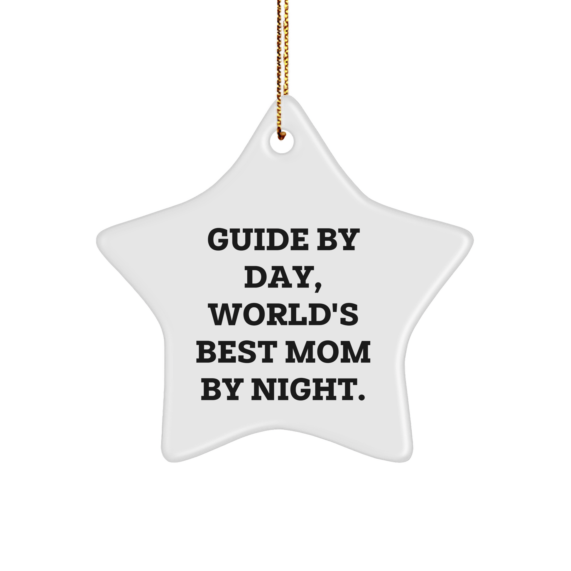 - This star-shaped ornament is a unique and thoughtful gift for the guide-loving mom in your life, featuring the funny quote 'Guide By Day, World's Best Mom By Night'
