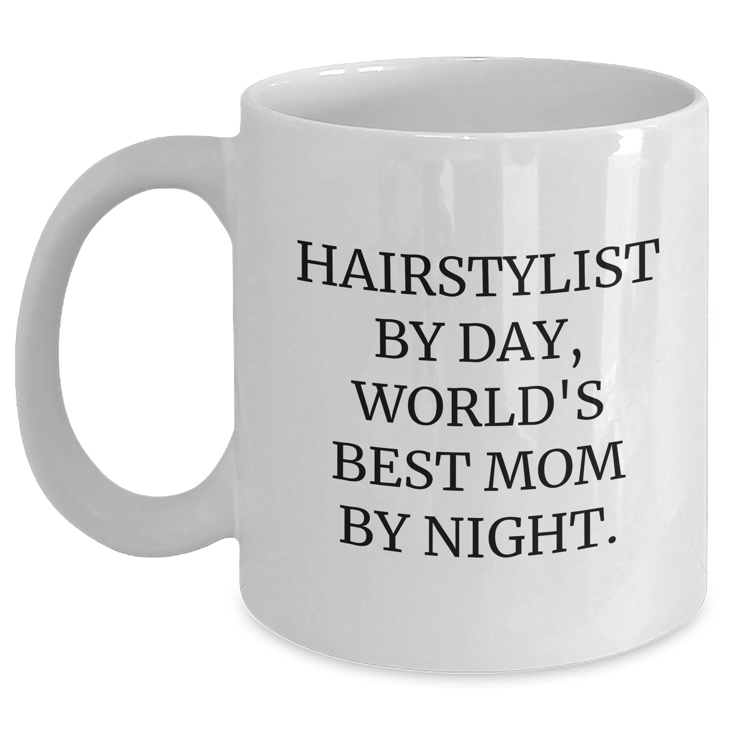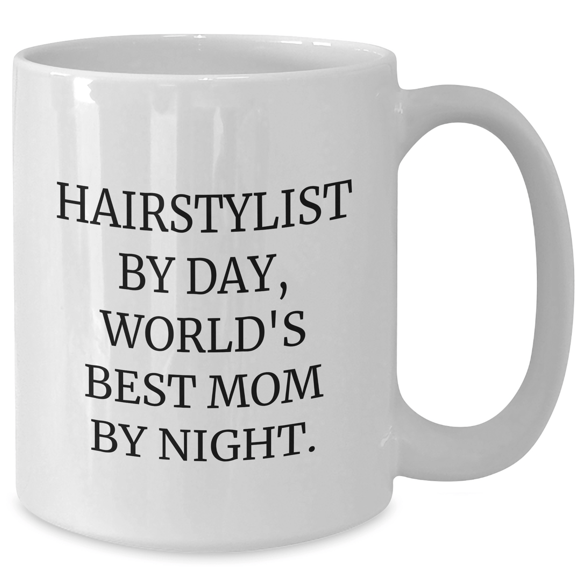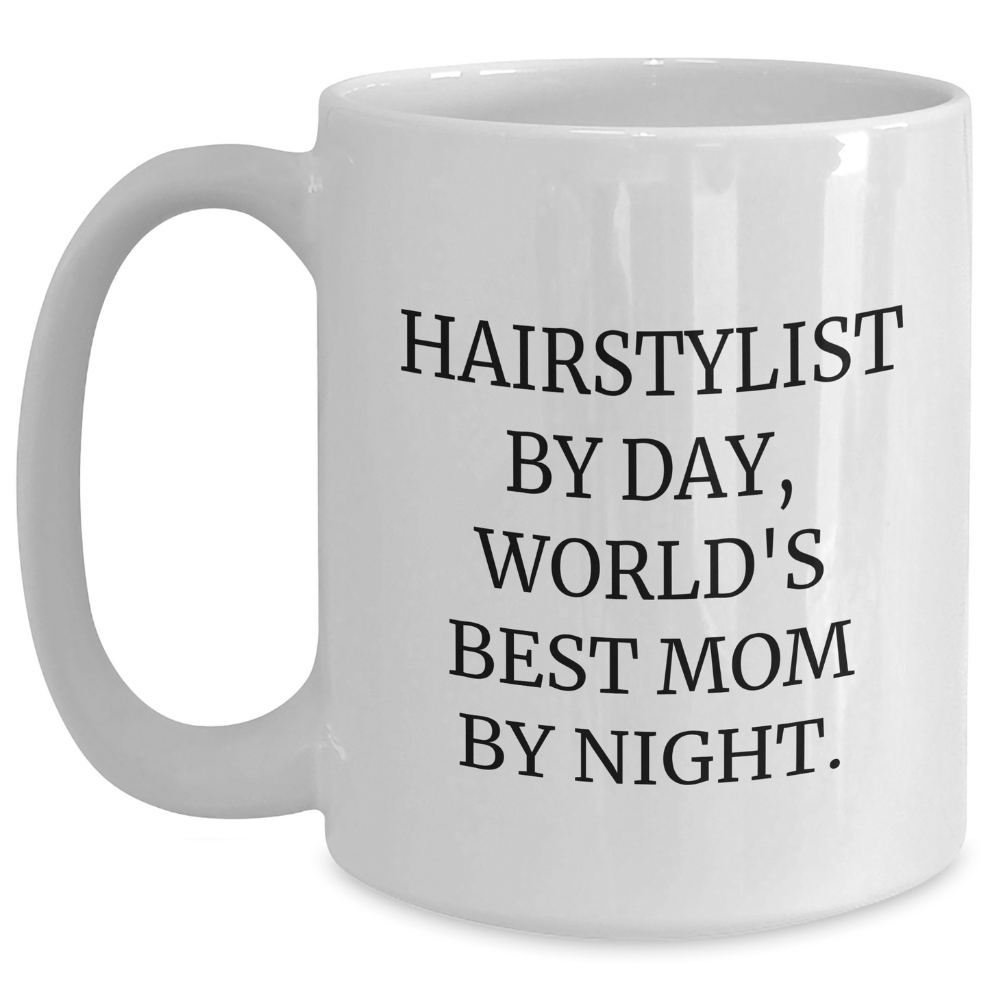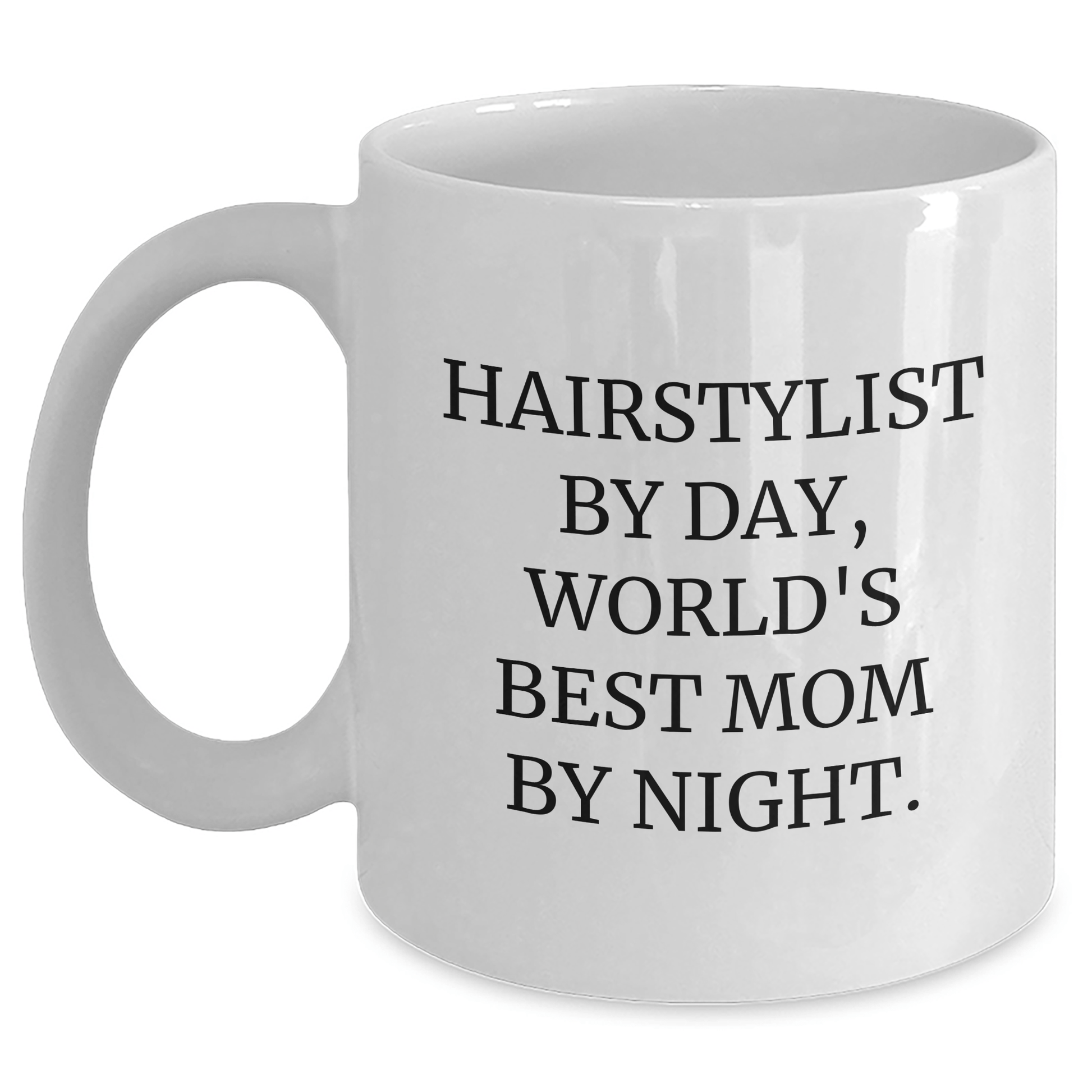 This white coffee mug is perfect for hairstylists who love a good quote. The quote reads: 'Hairstylist by day, world's best mom by night.' It's a funny and relatable message that's sure to resonate with any hairstylist. The mug is also a great way to show your appreciation for their hard work and dedication. Whether you're looking for a gift for Mother's Day, a birthday, or just because, this mug is a great choice.