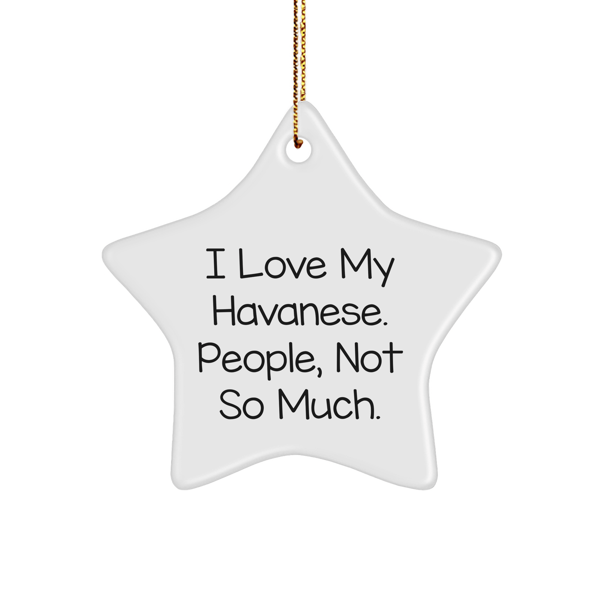 - Make a statement this Christmas with our 'I Love My Havanese. People, Not So Much.' Star Ornament, perfectly capturing the playful and loving nature of Havanese dogs. Its vibrant white color and star shape will add a touch of whimsy to any room or Christmas tree. Perfect for dog lovers and Havanese enthusiasts alike, this unique ornament is sure to spark conversations and make a wonderful gift.