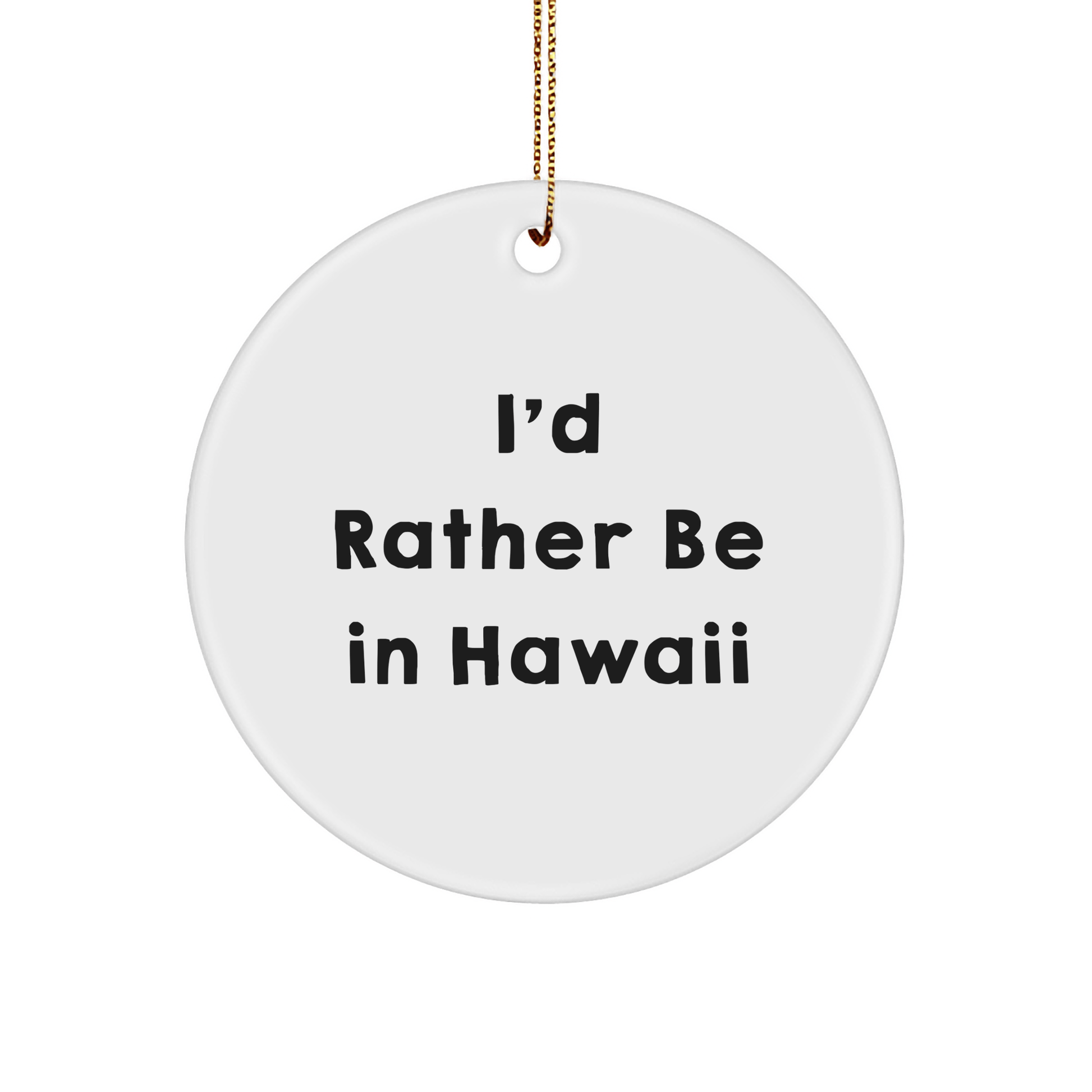 Escape to the islands of aloha with our 'I'd Rather Be In Hawaii' Circle Ornament, a thoughtful gift for any Hawaii enthusiast or Christmas lover. This vibrant white ornament is crafted from sturdy MDF with a high-gloss plastic finish, ensuring bright and vivid colors that will withstand the test of time.