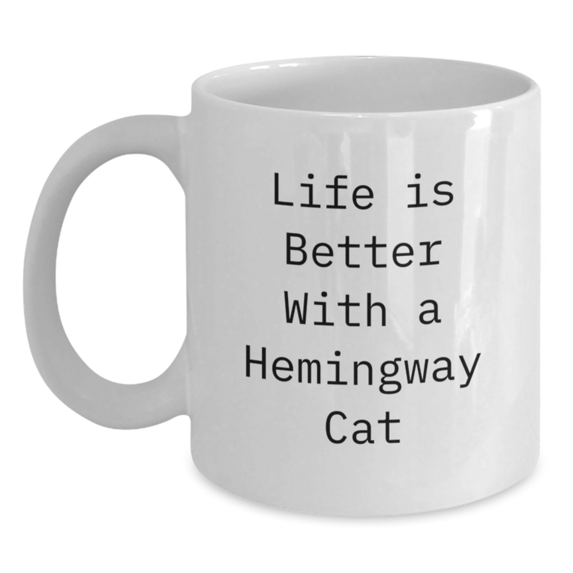 - Make a purrfect gift for any Hemingway Cat lover with this unique white coffee mug, featuring a quote that will resonate with them: 'Life Is Better With A Hemingway Cat'. The recipient will appreciate the thought and love that goes into this special birthday present.