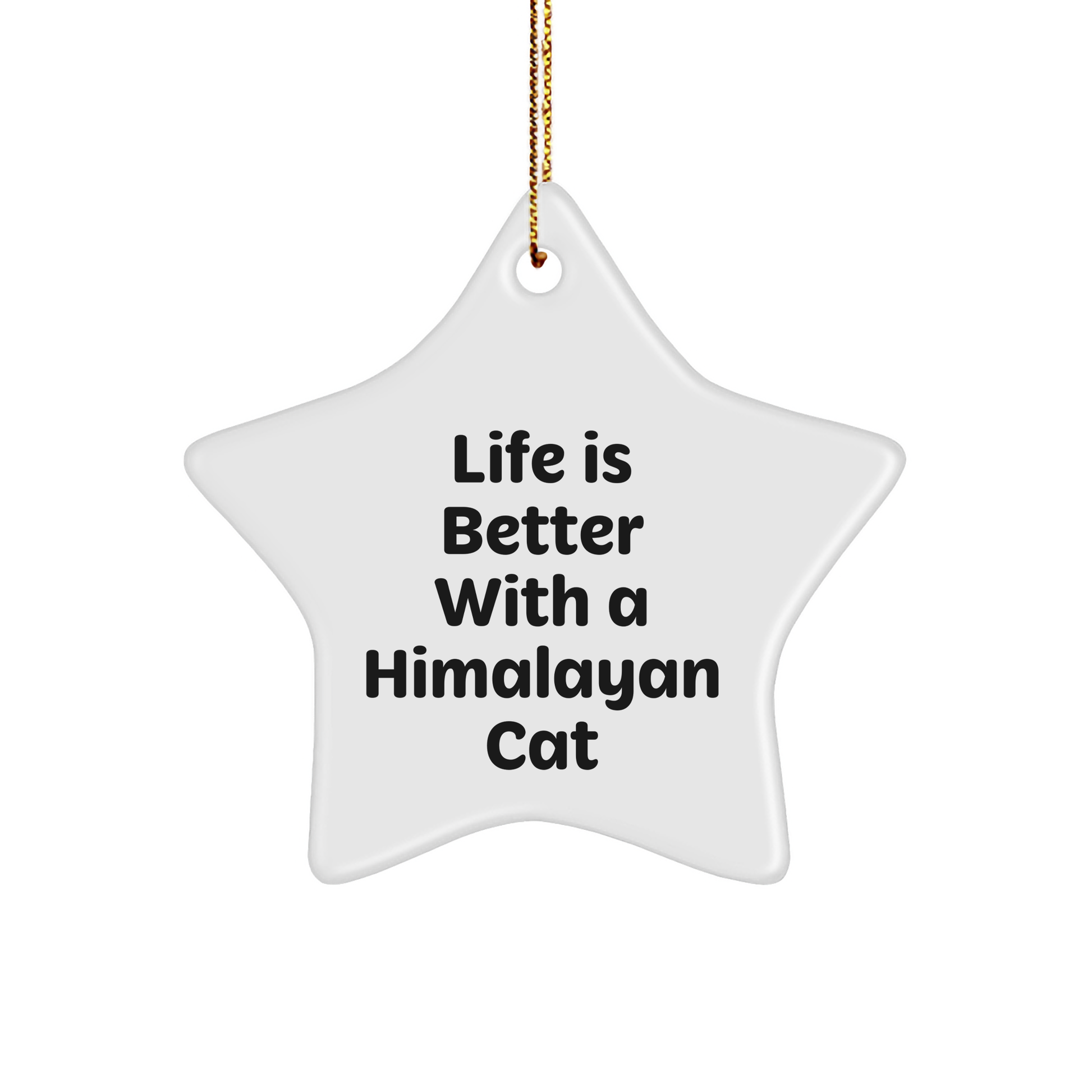 - Showcase your love for Himalayan cats with this beautiful Star Ornament, featuring a vibrant, edge-to-edge print of the quote 'Life Is Better With A Himalayan Cat'.