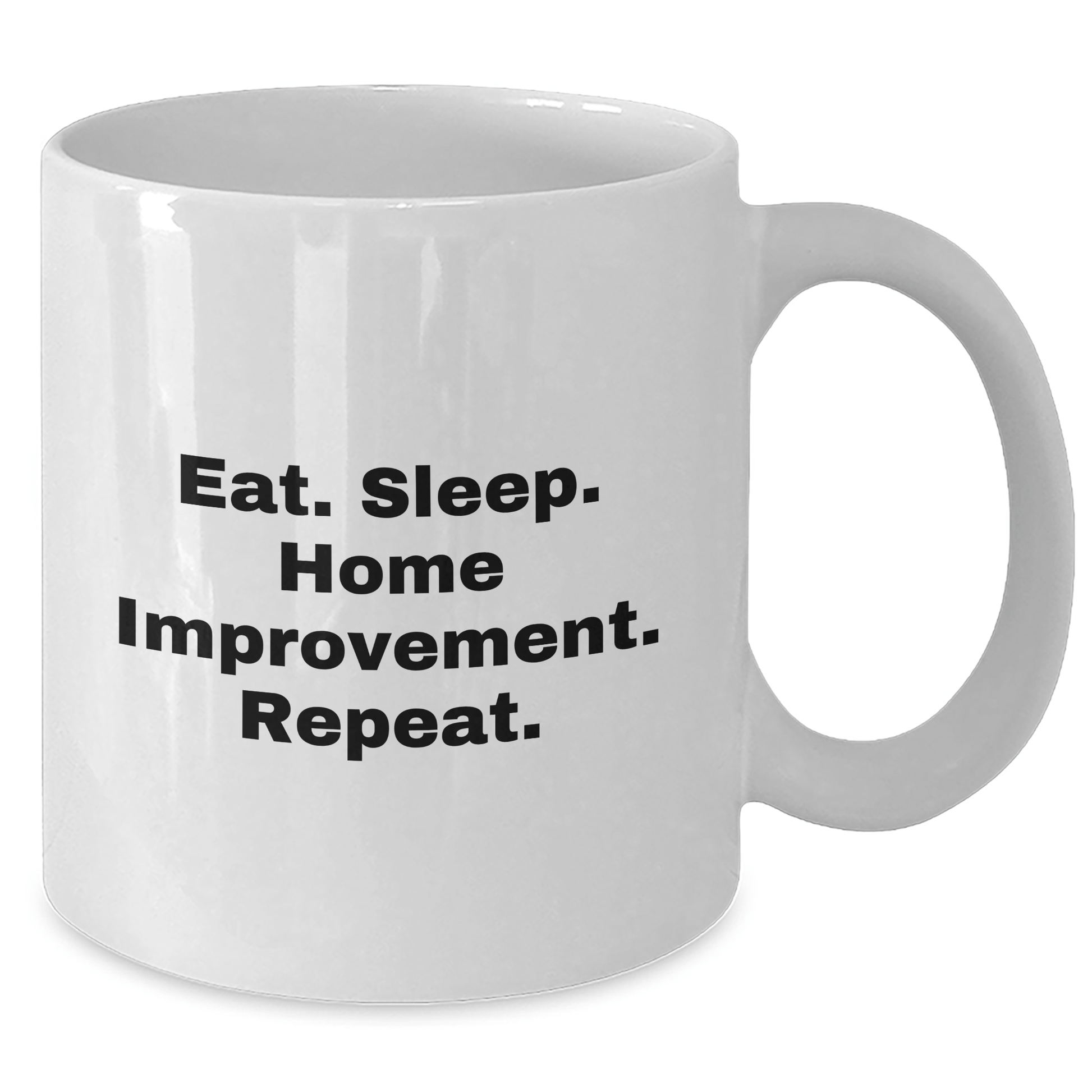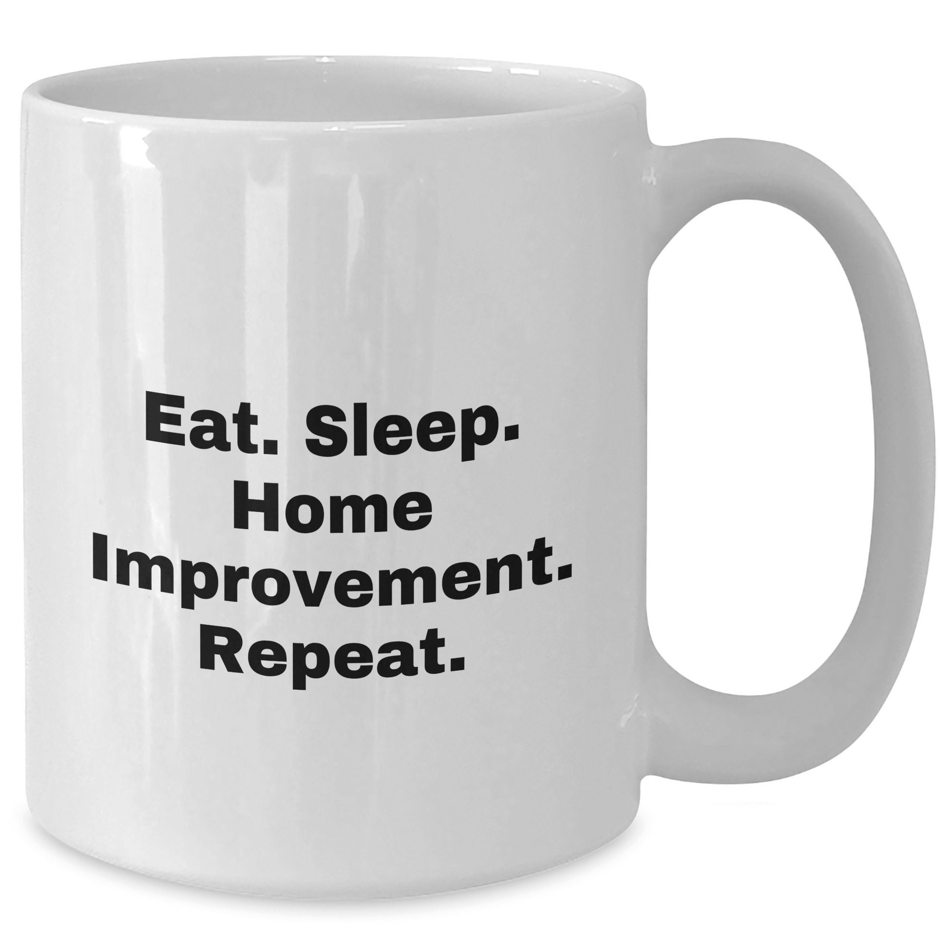 With its funny quote, 'Eat. Sleep. Home Improvement. Repeat.', this mug is sure to bring a smile to their face every morning. And with its 11oz or 15oz capacity, it's perfect for their daily dose of coffee or tea. Whether you're a Home Improvement enthusiast yourself or just looking for a unique gift, this mug is the perfect choice.