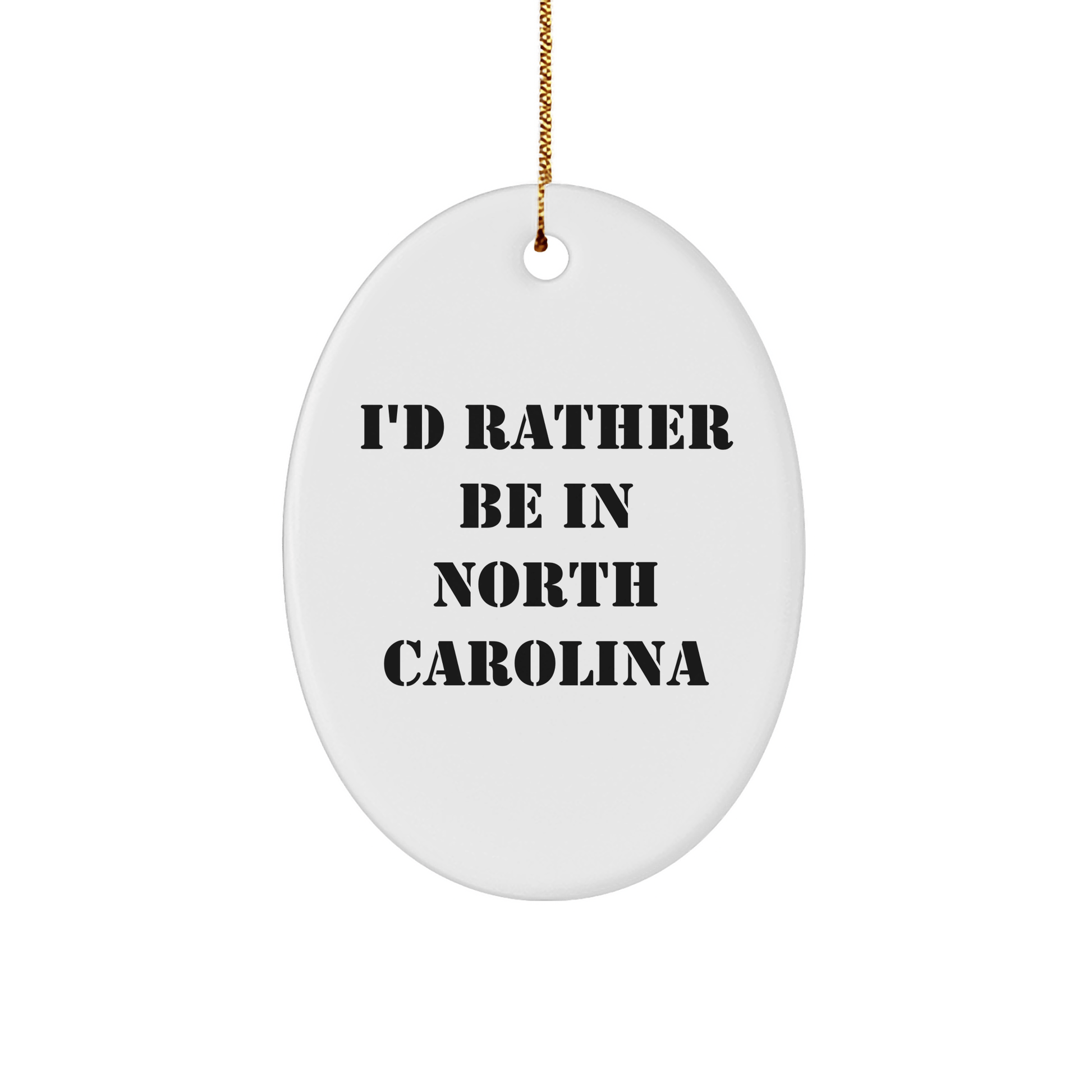 - Show your love for the Tar Heel State with this unique and funny North Carolina oval ornament, perfect for friends, family, or coworkers who would rather be in the Old North State.