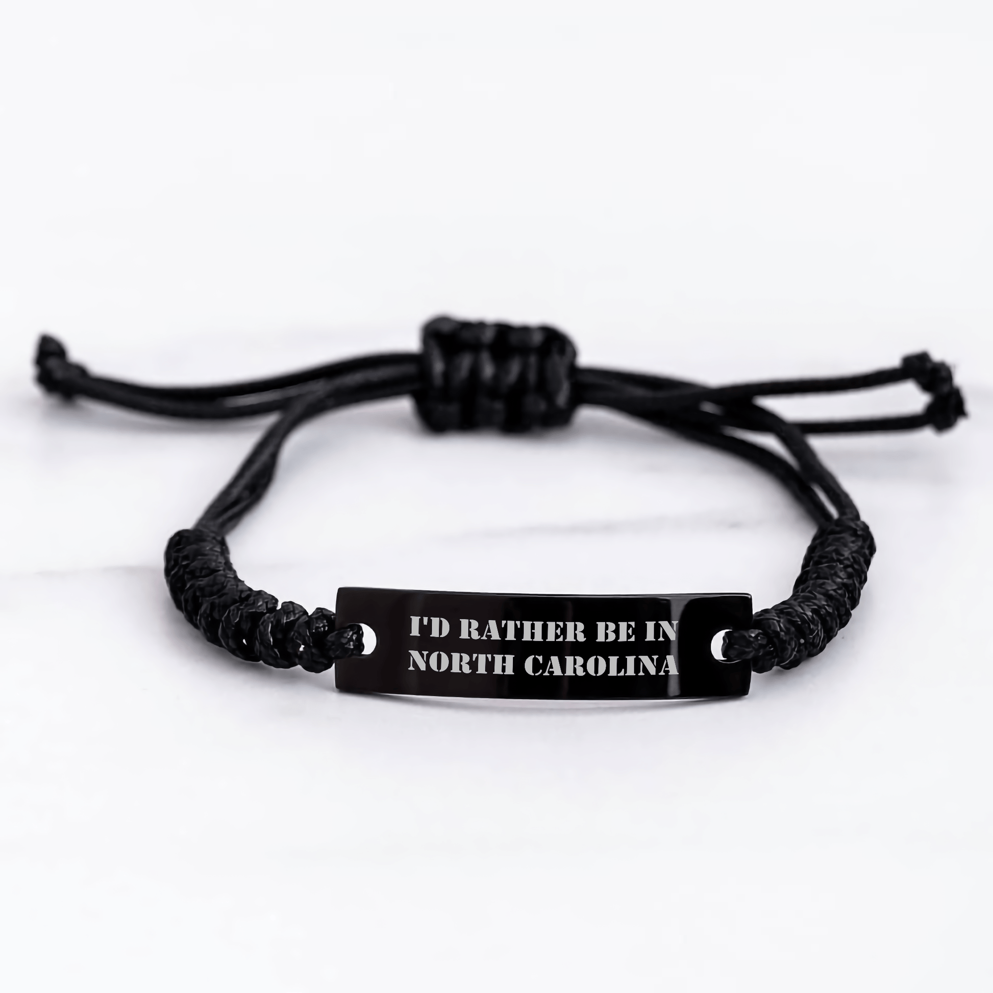 So what are you waiting for? Order your 'I'd Rather Be In North Carolina' rope bracelet today and show your love for the Tar Heel State!