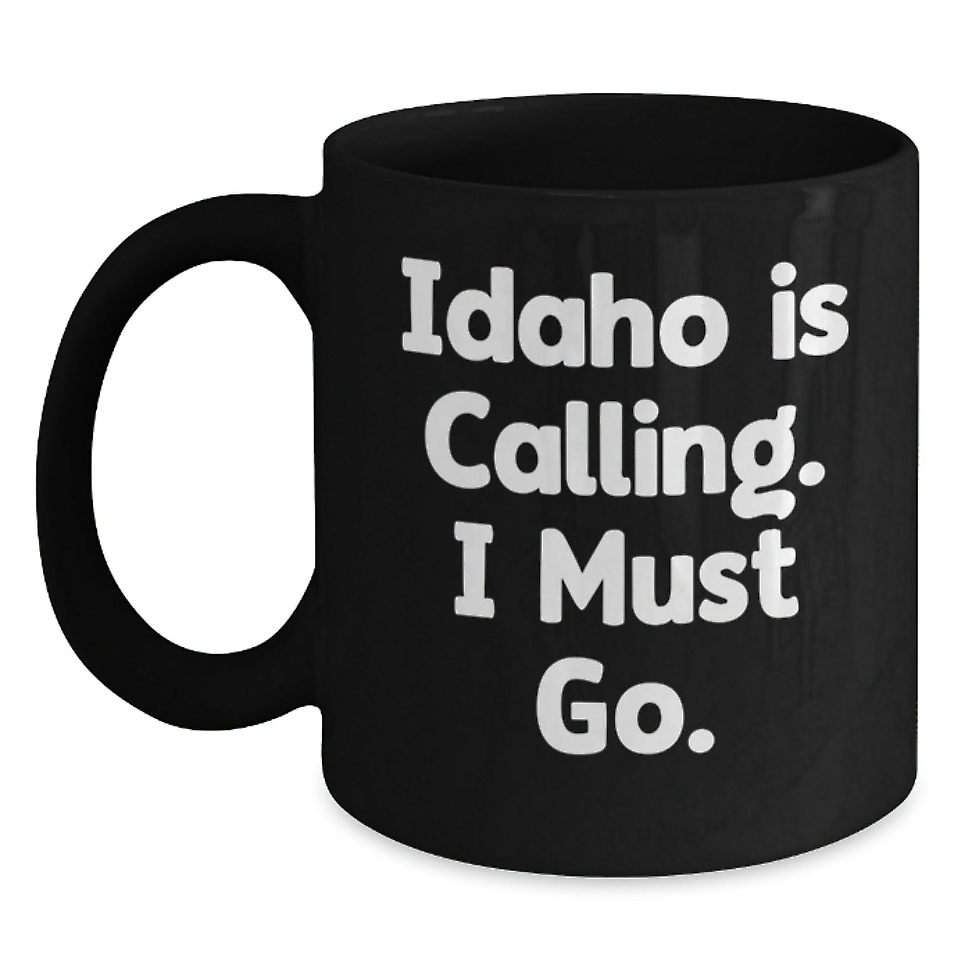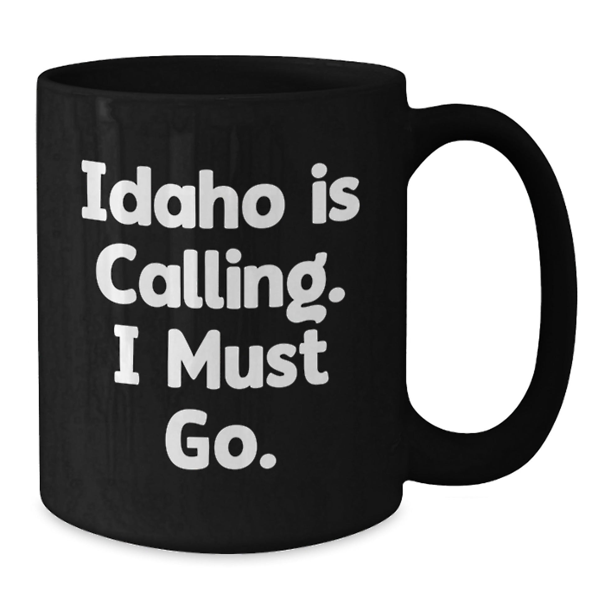 - This Idaho calling black coffee mug is a unique and thoughtful gift for anyone graduating from Idaho or just a fan of the state. The quote 'Idaho is calling, I must go' is a humorous way to express the desire to return to the beautiful state of Idaho. The mug is made of high-quality ceramic and is available in two sizes, 11oz and 15oz.