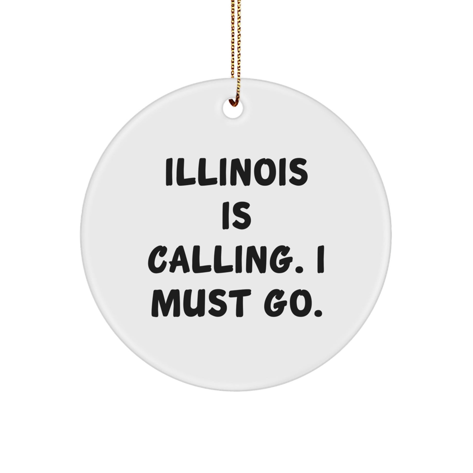 - Brighten up your home or office with this vibrant Illinois Circle Ornament, featuring a funny quote that's sure to bring a smile to your face: 'Illinois Is Calling. I Must Go.'