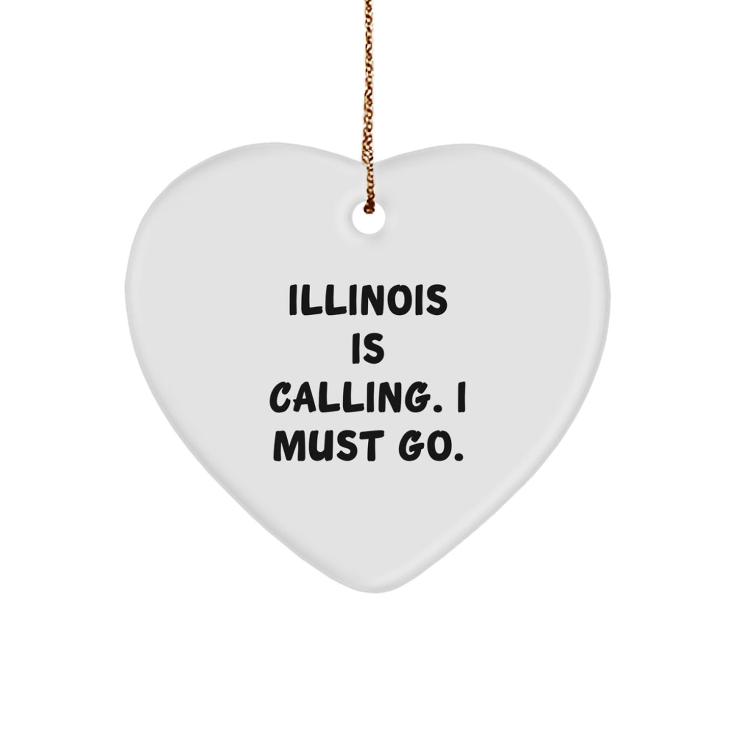 Are you looking for a unique gift for the Illinois enthusiast in your life? This heart ornament is the perfect way to show your love and appreciation for the Prairie State. Crafted from sturdy MDF and featuring a vibrant print of the quote 'Illinois Is Calling. I Must Go.', this ornament is a must-have for any Illinois lover. Whether you're giving it as a gift or keeping it for yourself, this ornament is sure to bring a smile to anyone's face.