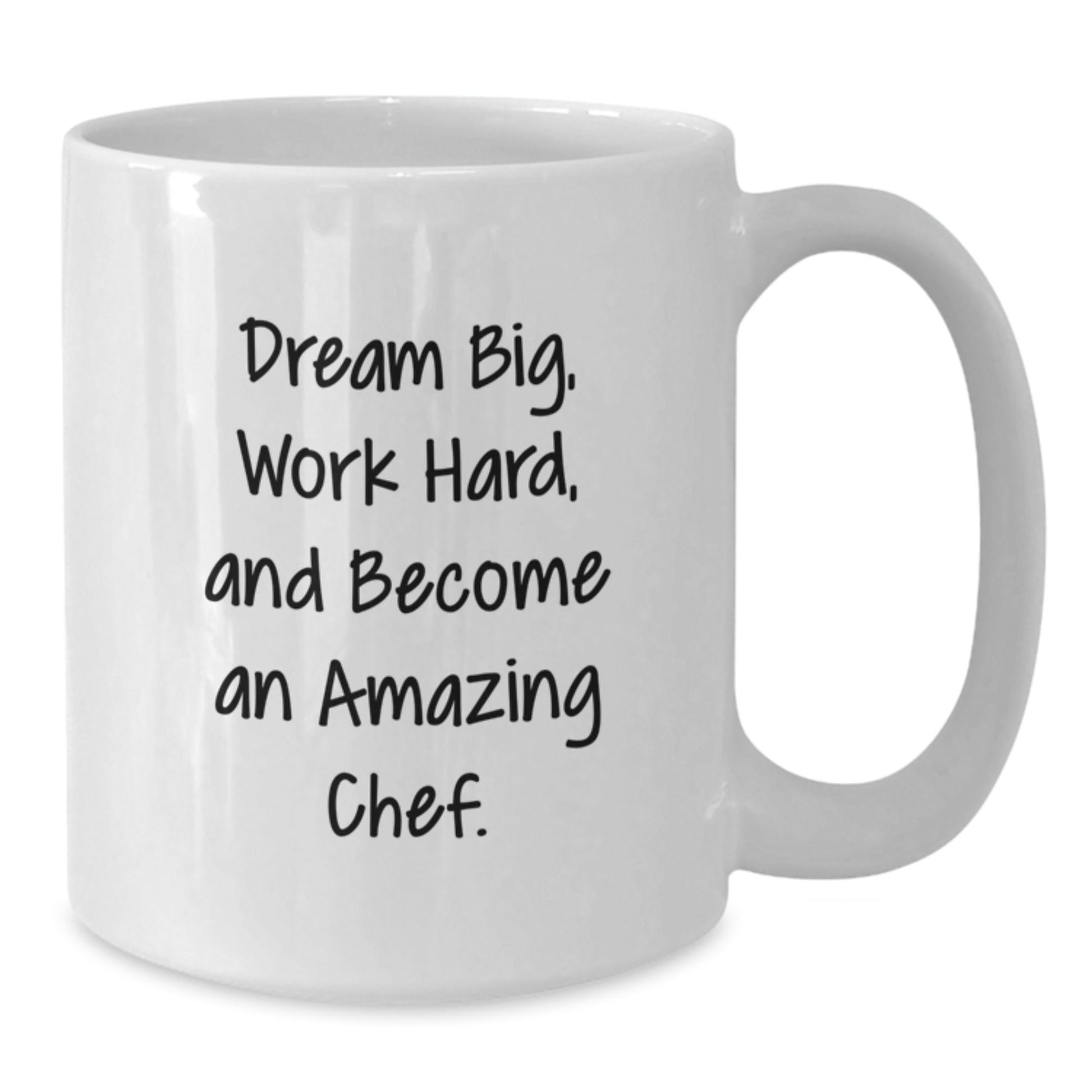 "keywords": "Chef, White Coffee Mug, Graduation Gifts, Inspirational, Funny, Work Hard, Dream Big, Become An Amazing Chef, Gift for Chef, Gift from Friends, Gift for Men, Gift for Women