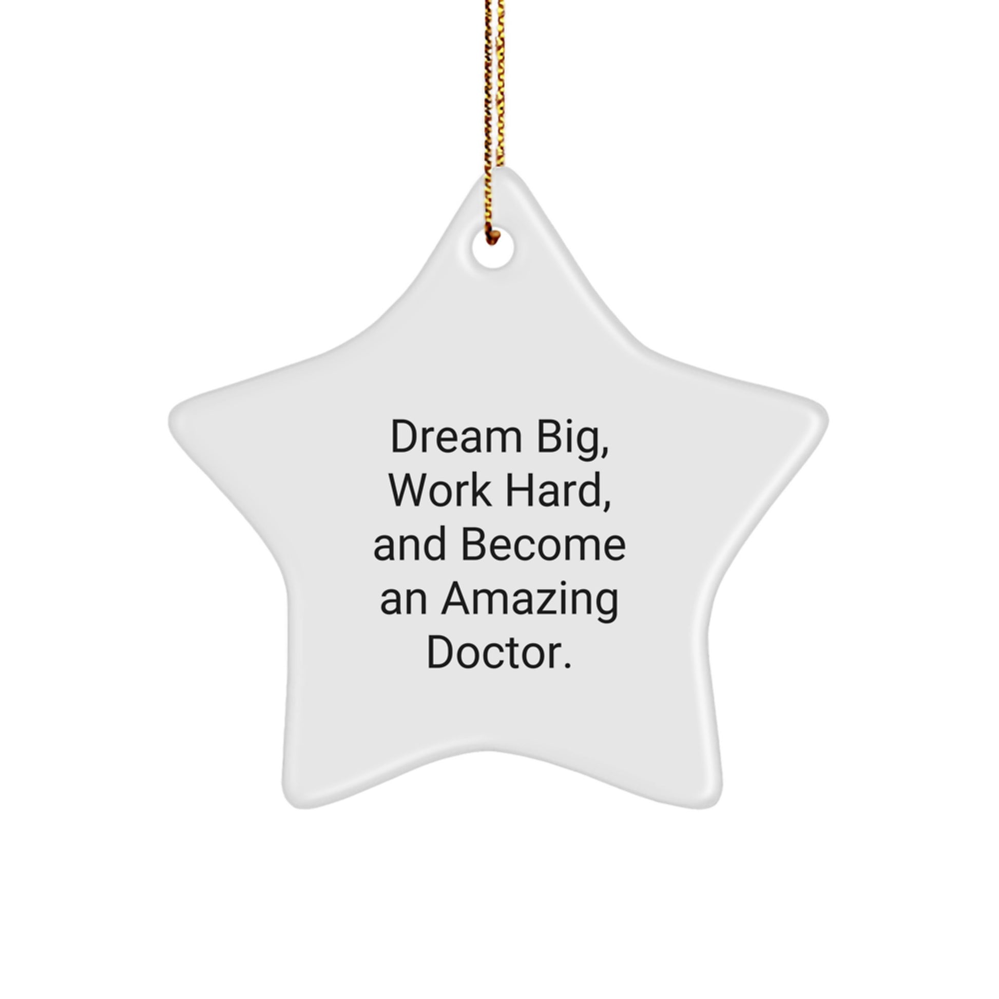 - Elevate your holiday decor with this doctor-themed star ornament, featuring a bright white finish and a star-shaped design that's sure to shine. A thoughtful gift for any doctor or medical professional who embodies the spirit of 'Dream Big, Work Hard, And Become An Amazing Doctor.'