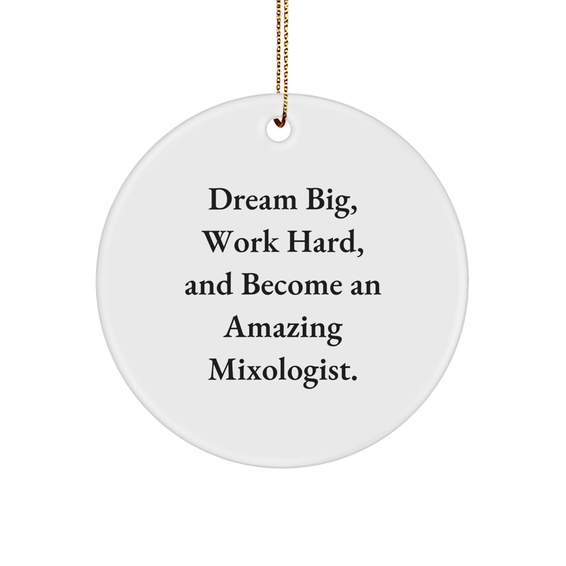 - Make a meaningful gift for the mixologist in your life with this inspirational Circle Ornament, featuring the quote 'Dream Big, Work Hard, And Become An Amazing Mixologist.'