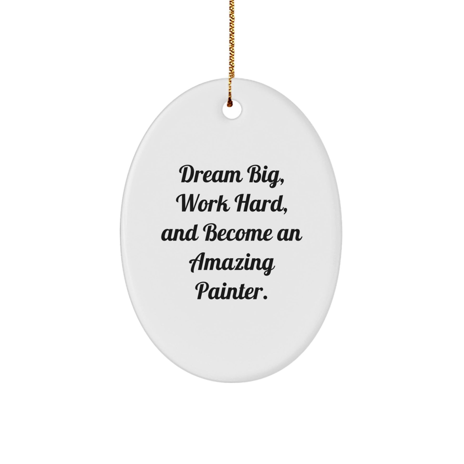 Are you looking for a unique gift for the painter in your life? Look no further! This oval ornament is a thoughtful and inspiring gift that will remind the painter to 'Dream Big, Work Hard, And Become An Amazing Painter.'
