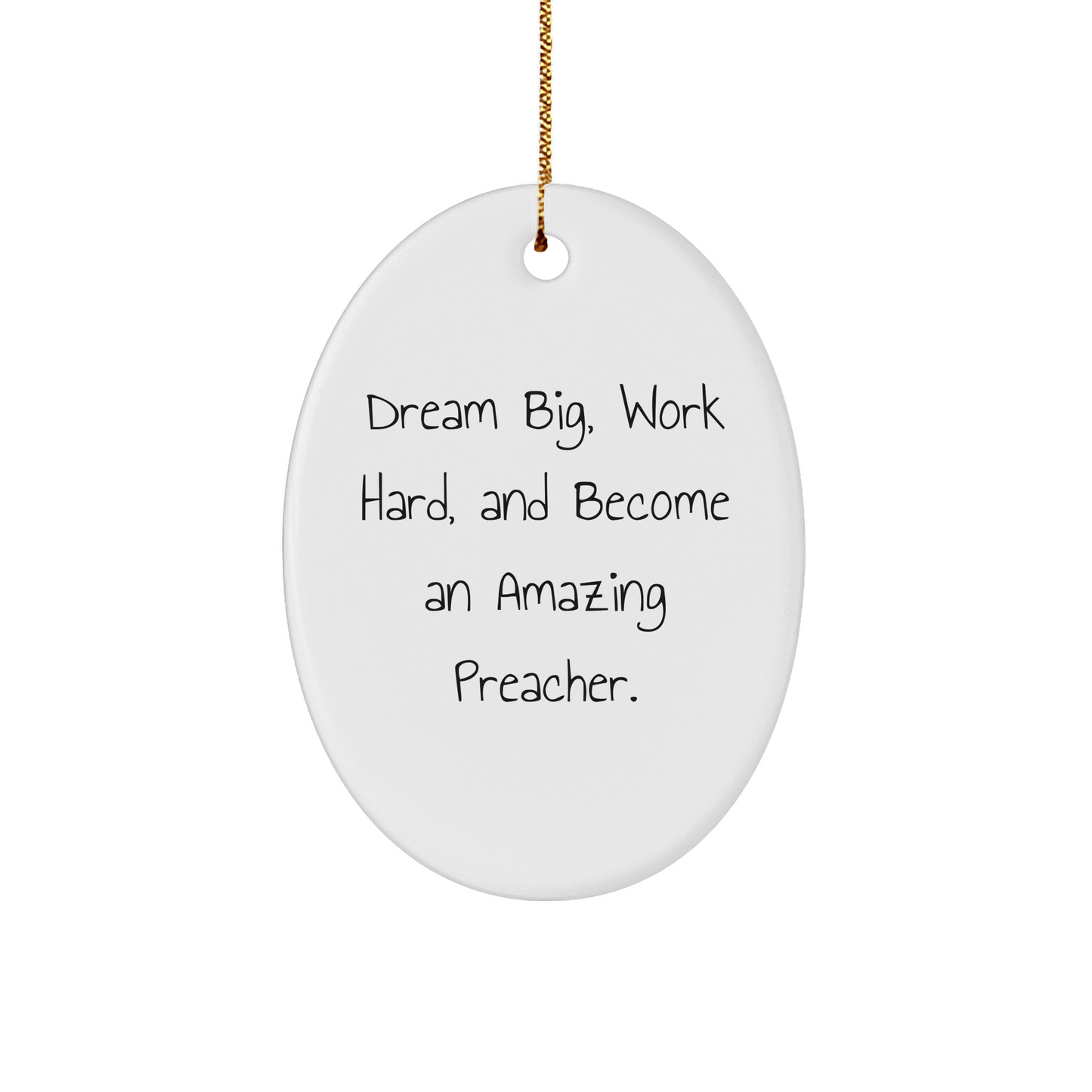 - This inspirational oval ornament is a beautiful representation of the quote 'Dream Big, Work Hard, And Become An Amazing Preacher.' It's a reminder that with hard work and determination, anyone can achieve their dreams and become an amazing preacher.