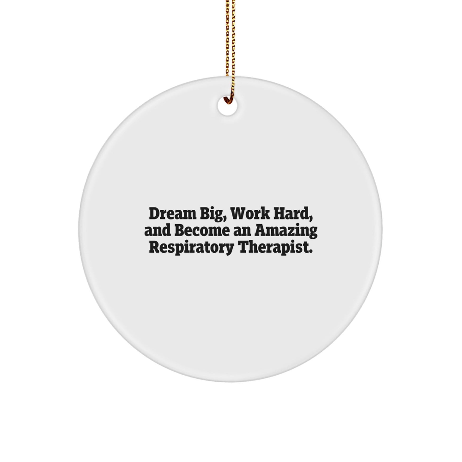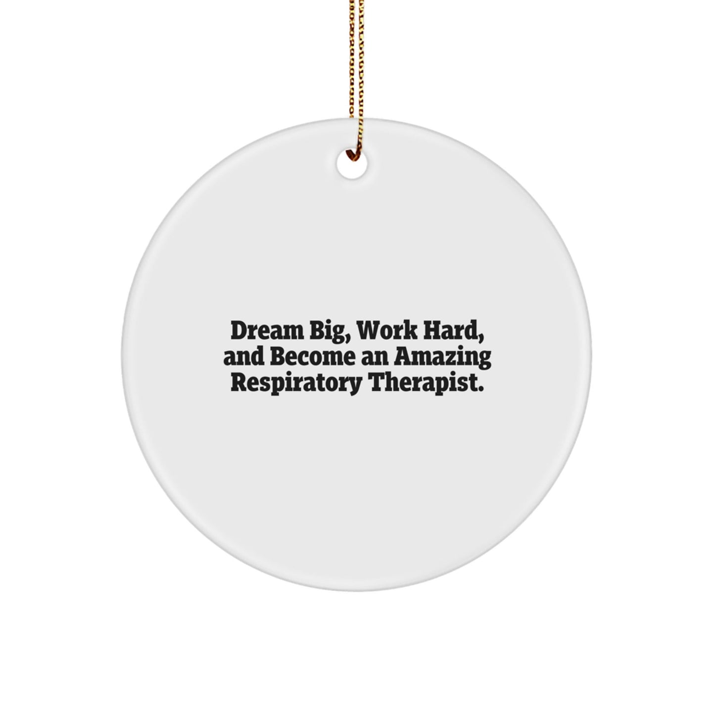 As a Respiratory Therapist, you dedicate your life to helping others breathe easy. Now, celebrate your passion with this unique Circle Ornament, featuring the inspiring quote 'Dream Big, Work Hard, And Become An Amazing Respiratory Therapist.'