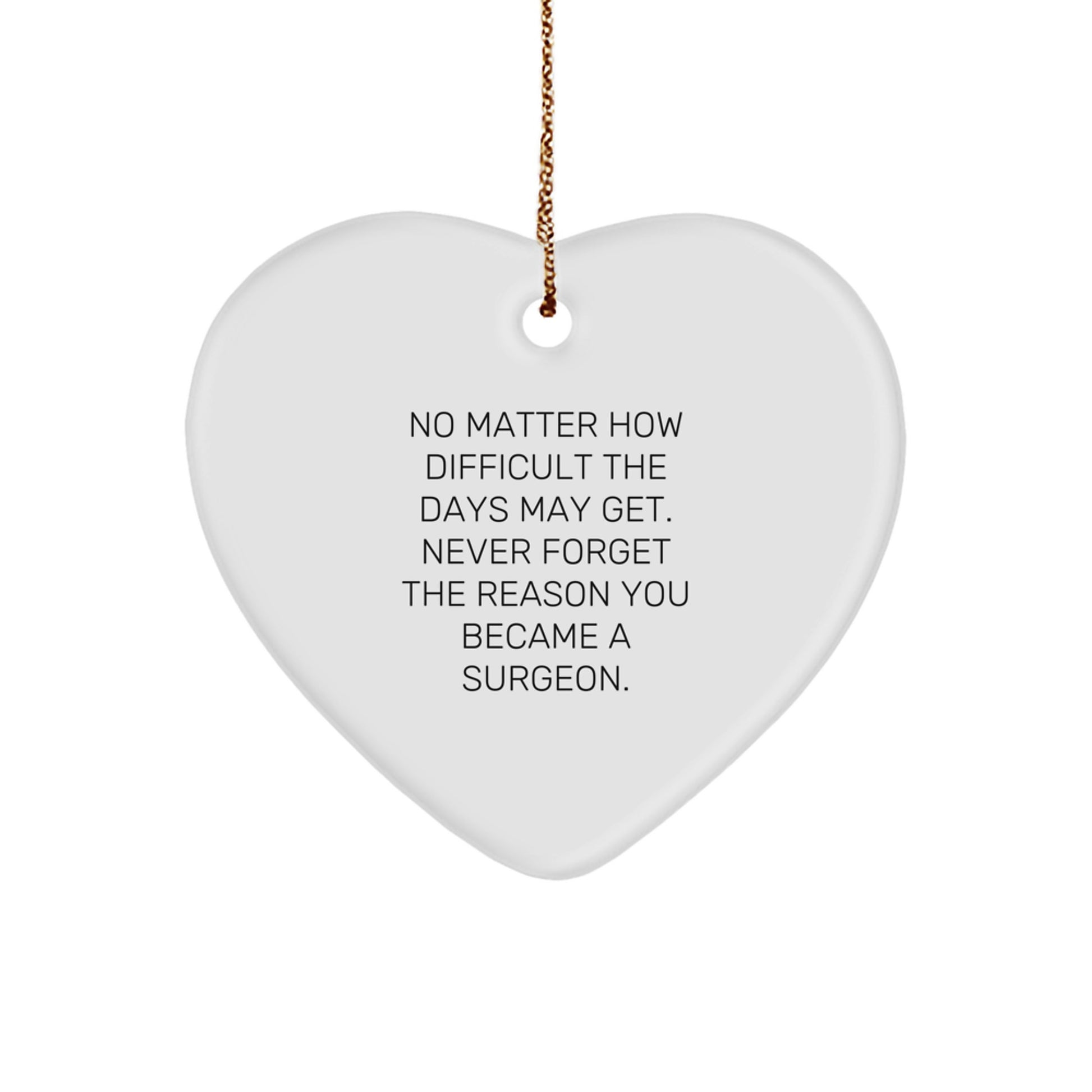 Are you searching for a unique and thoughtful gift for the surgeon in your life? Look no further! This heart-shaped ornament is crafted from sturdy MDF with a high-gloss plastic finish, ensuring a long-lasting design. The vibrant colors are printed from edge-to-edge via Sublimation, making it a stunning addition to any Christmas tree or decoration. The quote 'No Matter How Difficult The Days May Get. Never Forget The Reason You Became A Surgeon.' is a heartfelt reminder of the surgeon's dedication and passion for their work. Whether you're a family member, friend, or coworker, this ornament is the perfect way to show your appreciation and support.