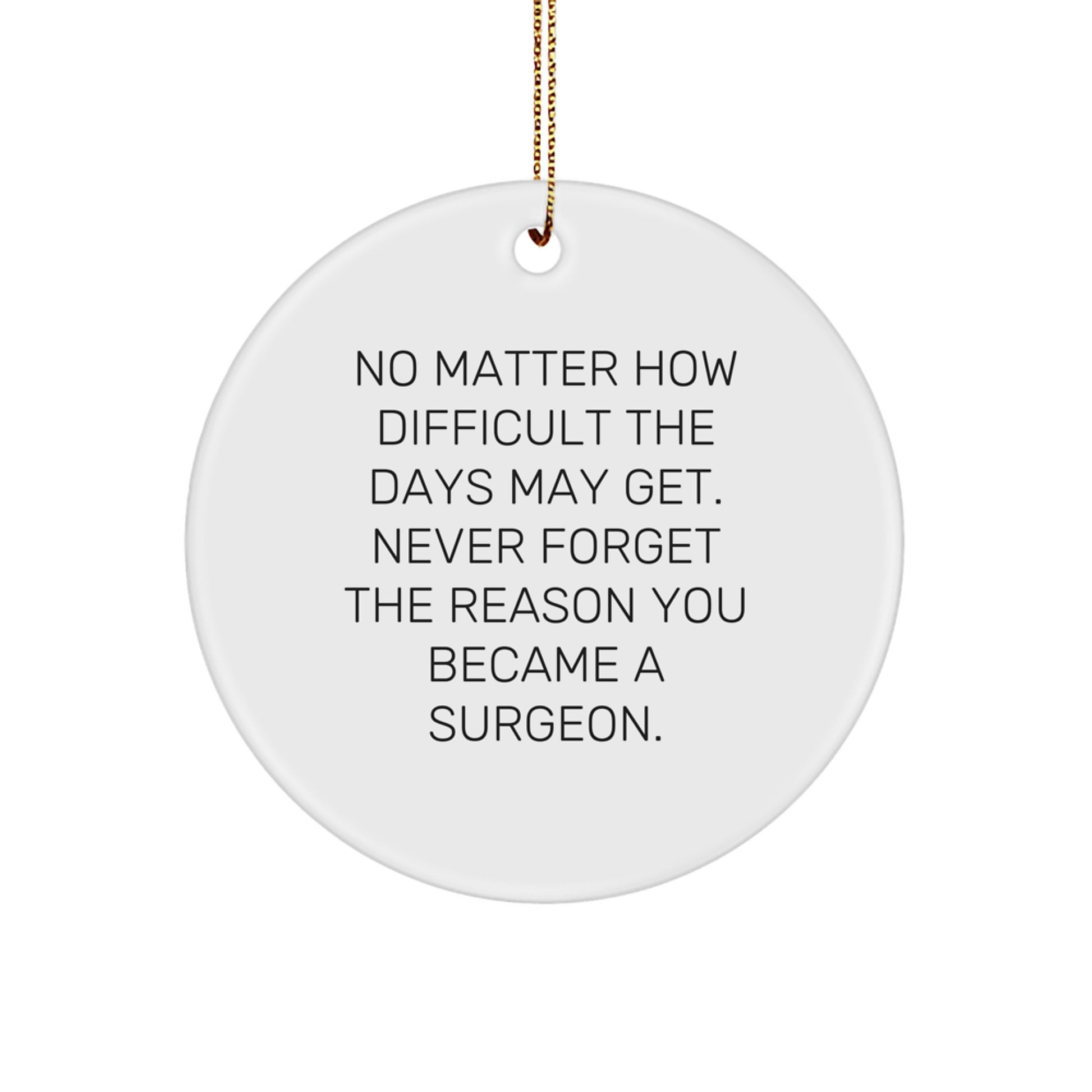 Are you looking for a unique and thoughtful gift for the surgeon in your life? Look no further! This Christmas, surprise them with a beautiful circle ornament featuring the inspirational quote 'No matter how difficult the days may get, never forget the reason you became a surgeon.'