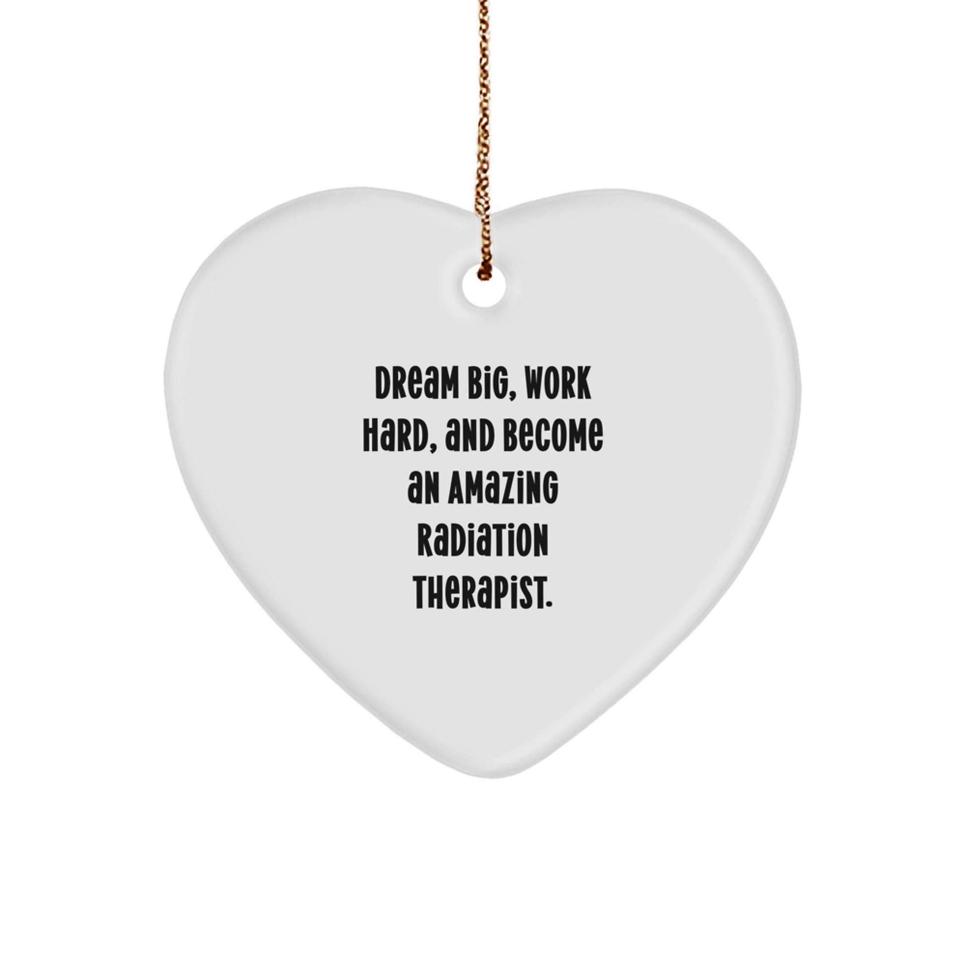 Are you looking for a unique gift for the Radiation Therapist in your life? Something that inspires them to 'Dream Big' and 'Work Hard'? Look no further! This heart-shaped ornament is the perfect way to show your appreciation for their dedication and hard work. Crafted from sturdy MDF with a high-gloss plastic finish, it's lightweight and resistant to breaking, making it a great choice for households with children or pets. The vibrant colors are printed from edge-to-edge via Sublimation, ensuring a bright and vivid design. Plus, it comes with a festive gold cord for easy hanging. Whether you're a friend, family member, or colleague, this ornament is the perfect way to express your gratitude and support. So why wait? Don't miss out and make this Radiation Therapist's Christmas one to remember!