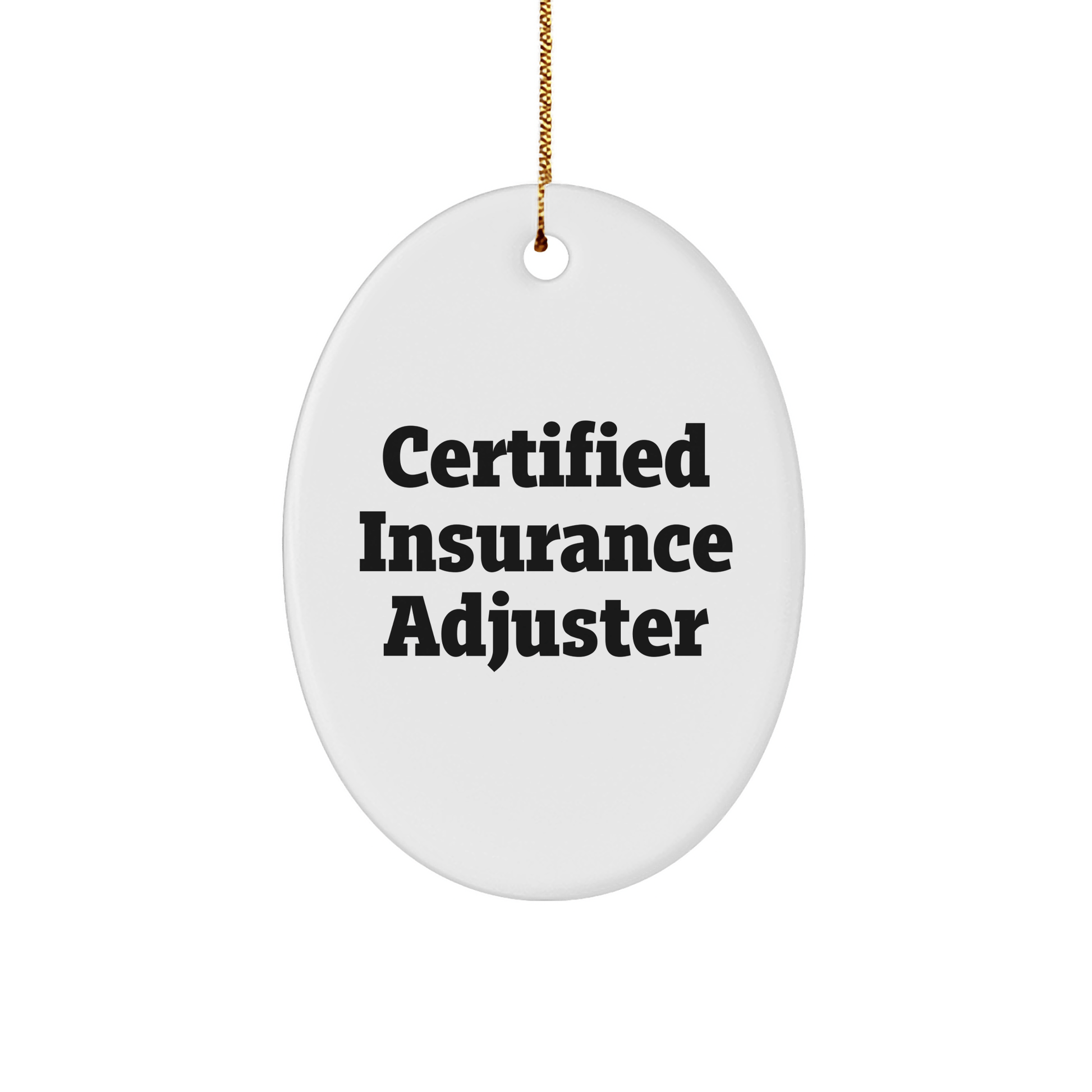 - Our Certified Insurance Adjuster Oval Ornament is a unique and thoughtful gift for the Insurance Adjuster in your life. The funny quote adds a touch of humor and personality to the design, making it a great way to show your appreciation for their hard work and dedication.
