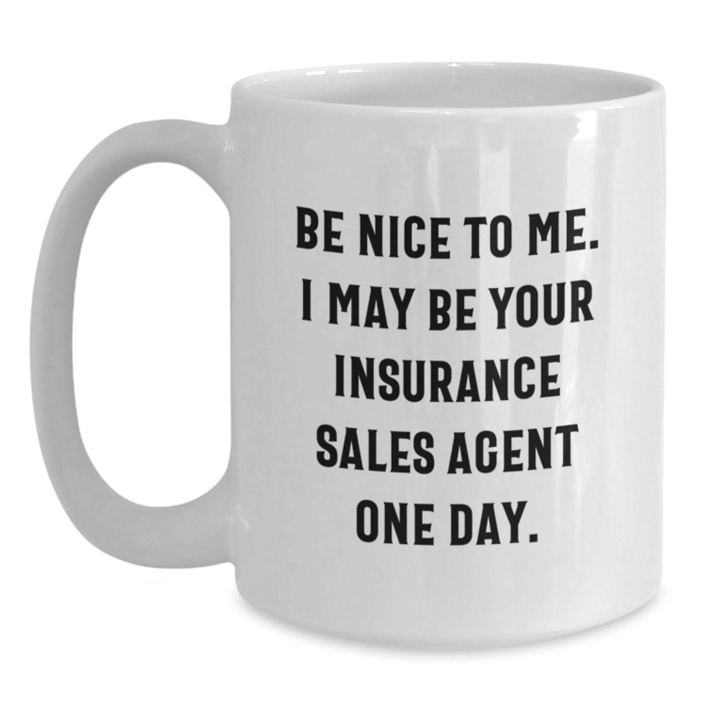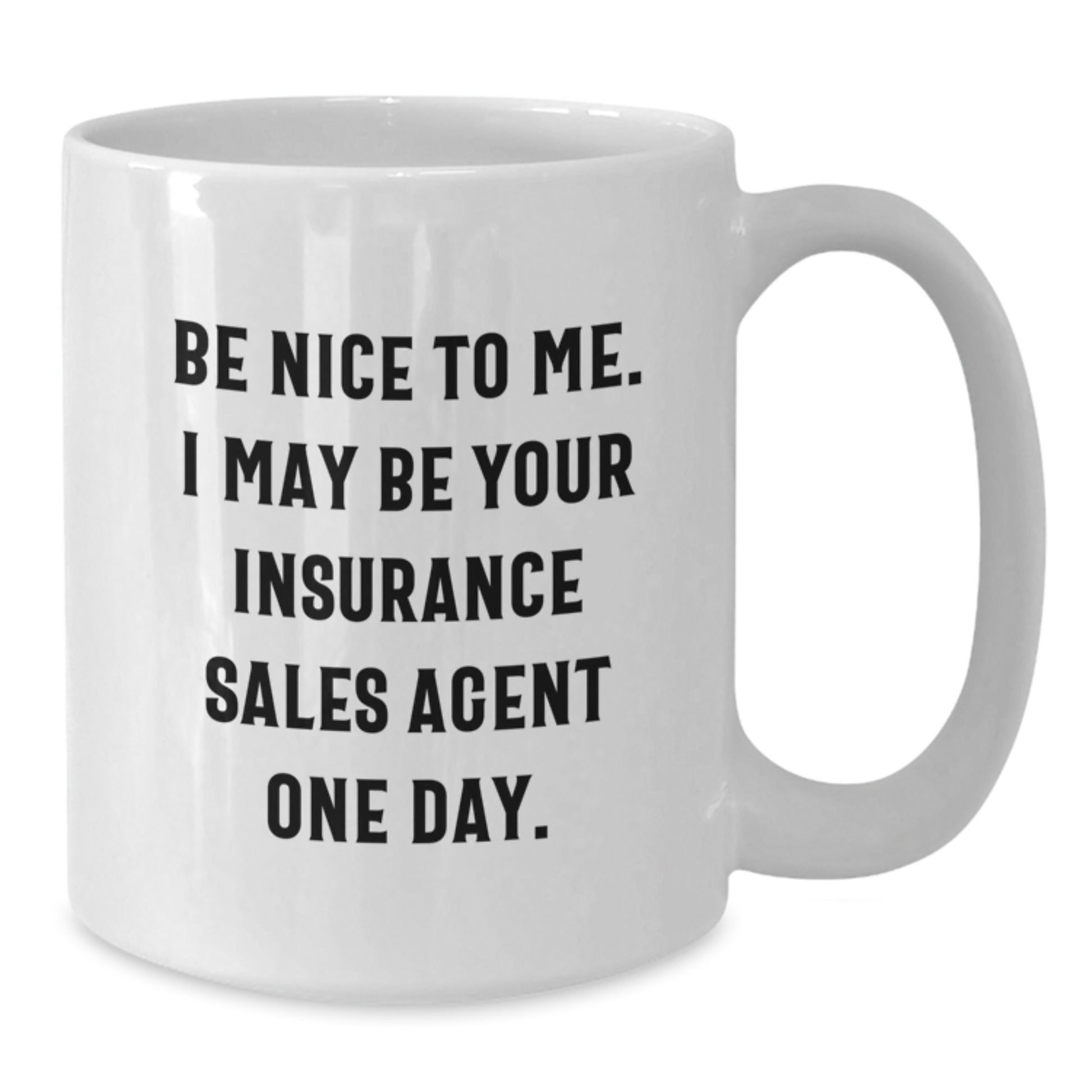 - The quote 'Be Nice To Me. I May Be Your Insurance Sales Agent One Day.' is a humorous take on the Insurance Sales Agent's role and is sure to bring a smile to their face.
