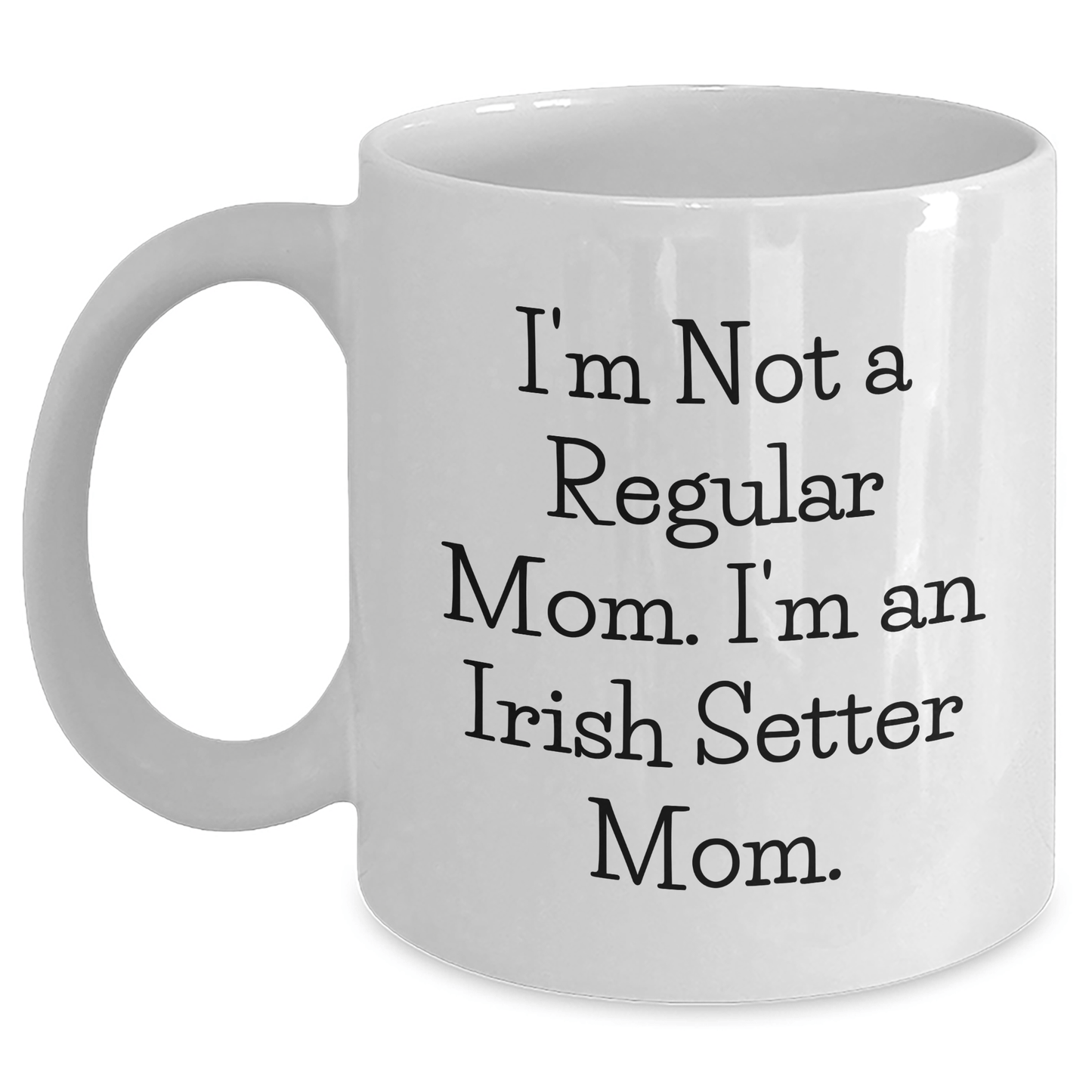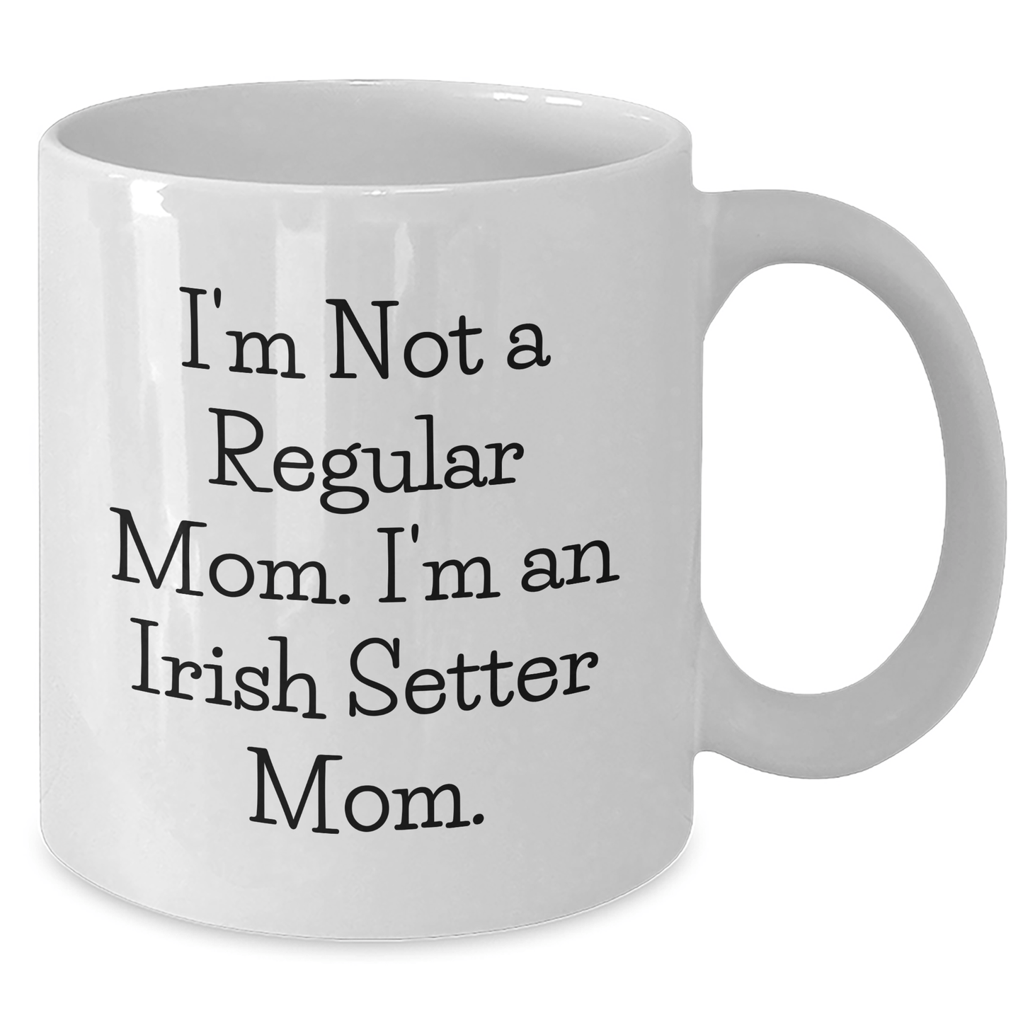 - Make a statement with this unique Irish Setter Dog White Coffee Mug, featuring the humorous quote 'I'm Not A Regular Mom. I'm An Irish Setter Mom.' - perfect for Irish Setter dog lovers and coffee enthusiasts alike. This coffee mug is a thoughtful gift for any Irish Setter parent who appreciates their furry friend.