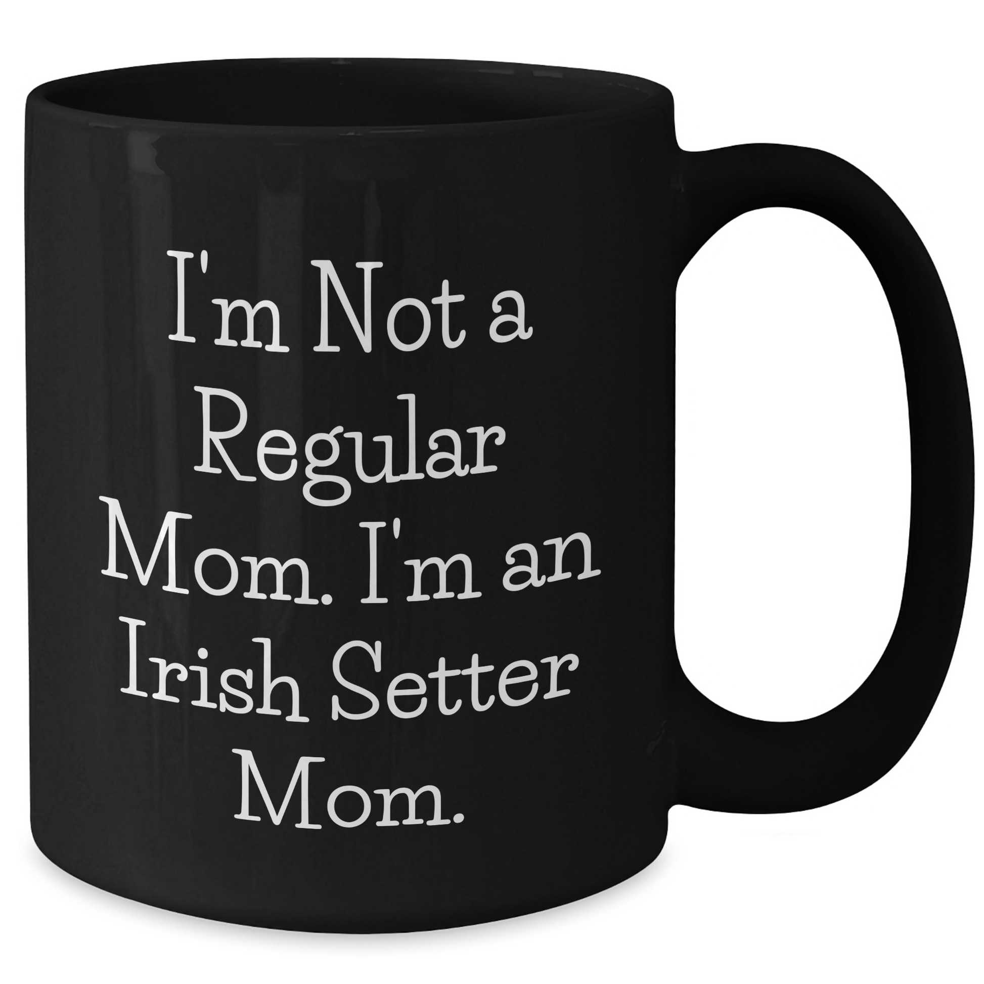 So why wait? Get your 'I'm Not A Regular Mom. I'm An Irish Setter Mom.' black coffee mug today and show off your love for Irish Setter dogs!