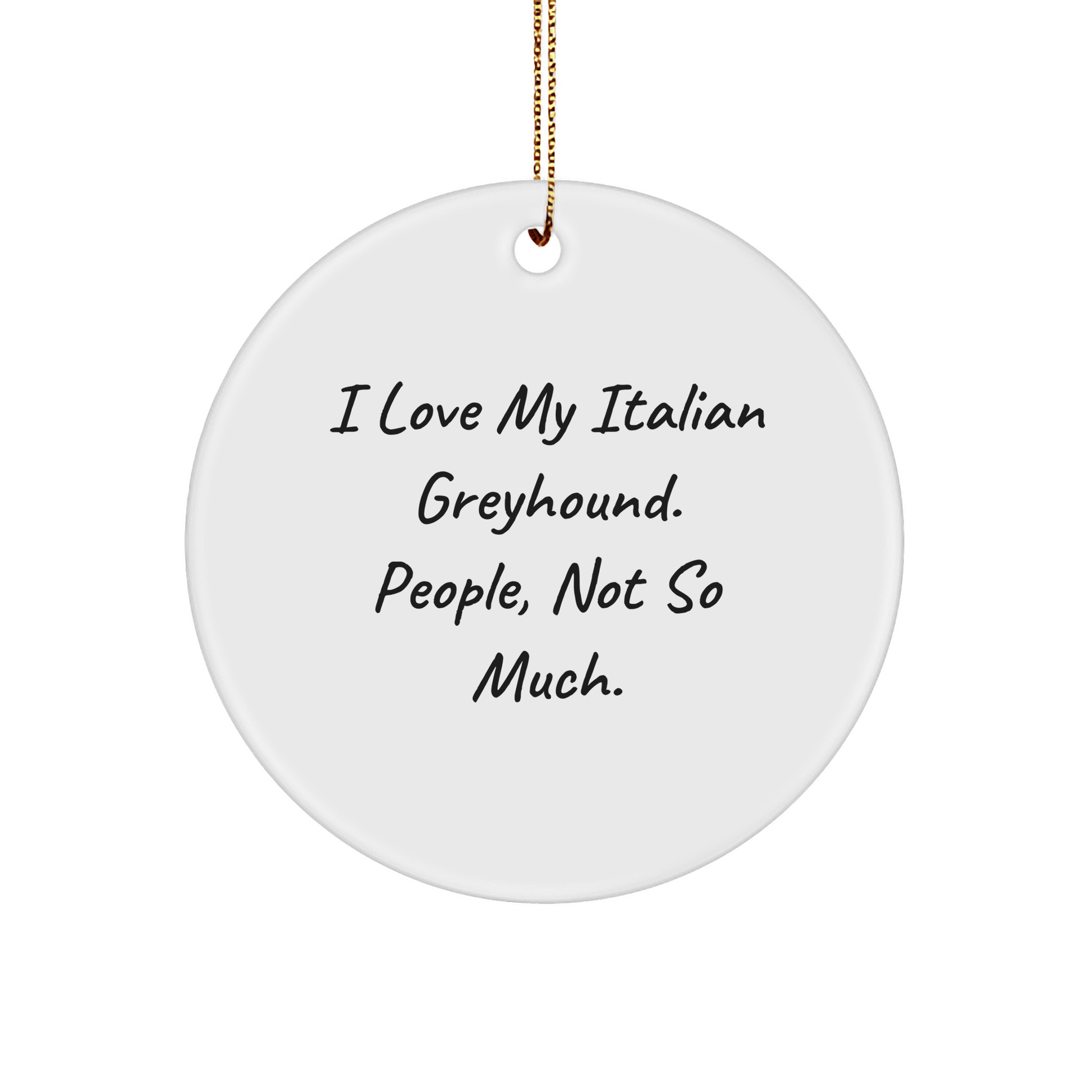 - This funny quote circle ornament is a thoughtful gift for anyone who loves Italian Greyhound Dogs. The quote 'I Love My Italian Greyhound. People, Not So Much.' is a hilarious and relatable phrase that any Italian Greyhound Dog owner will appreciate.