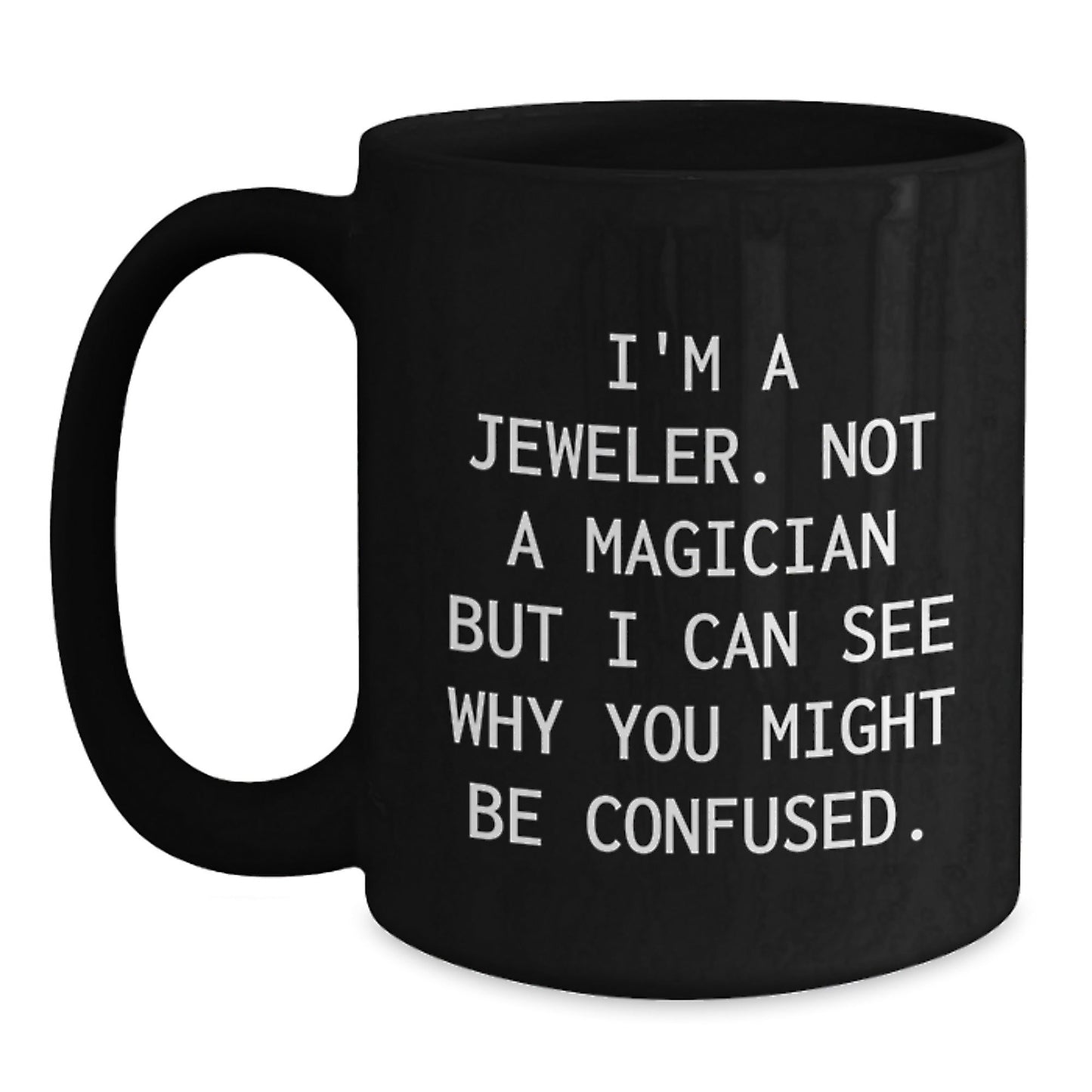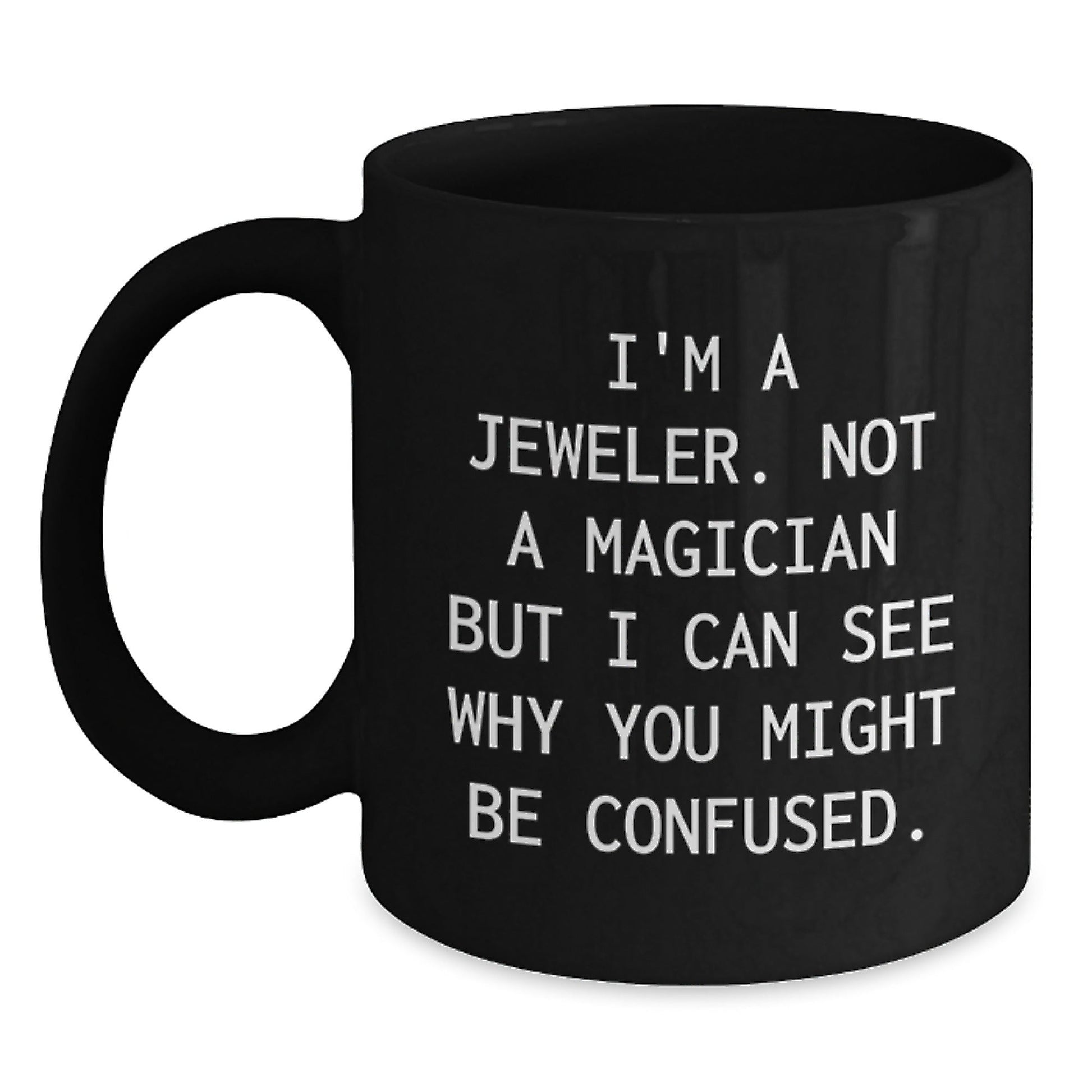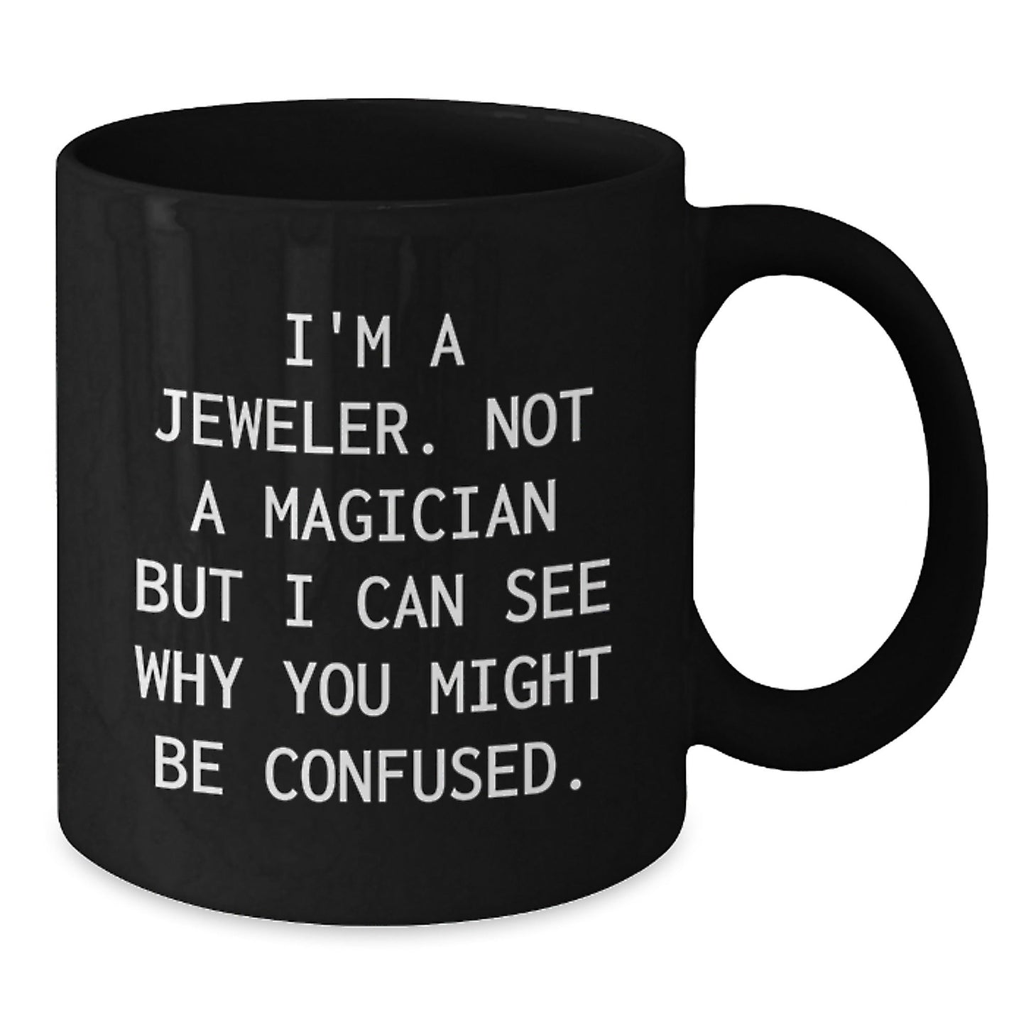 - A unique and funny gift for Jeweler enthusiasts or those who appreciate their work, featuring the quote 'I'm A Jeweler. Not A Magician But I Can See Why You Might Be Confused.'