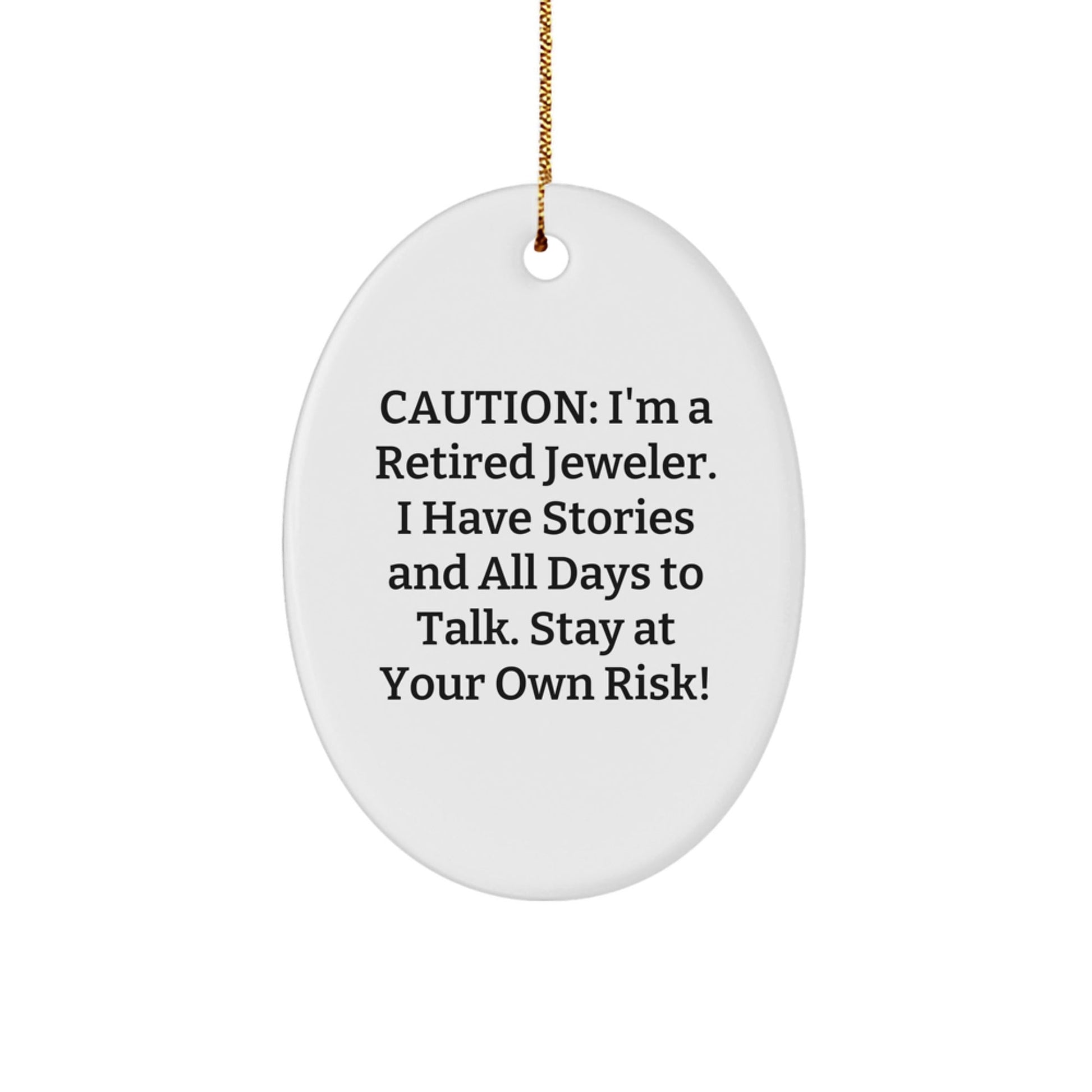 - This oval ornament is a thoughtful and humorous way to show your appreciation for the jeweler in your life, with a funny quote that's sure to bring a smile to their face.