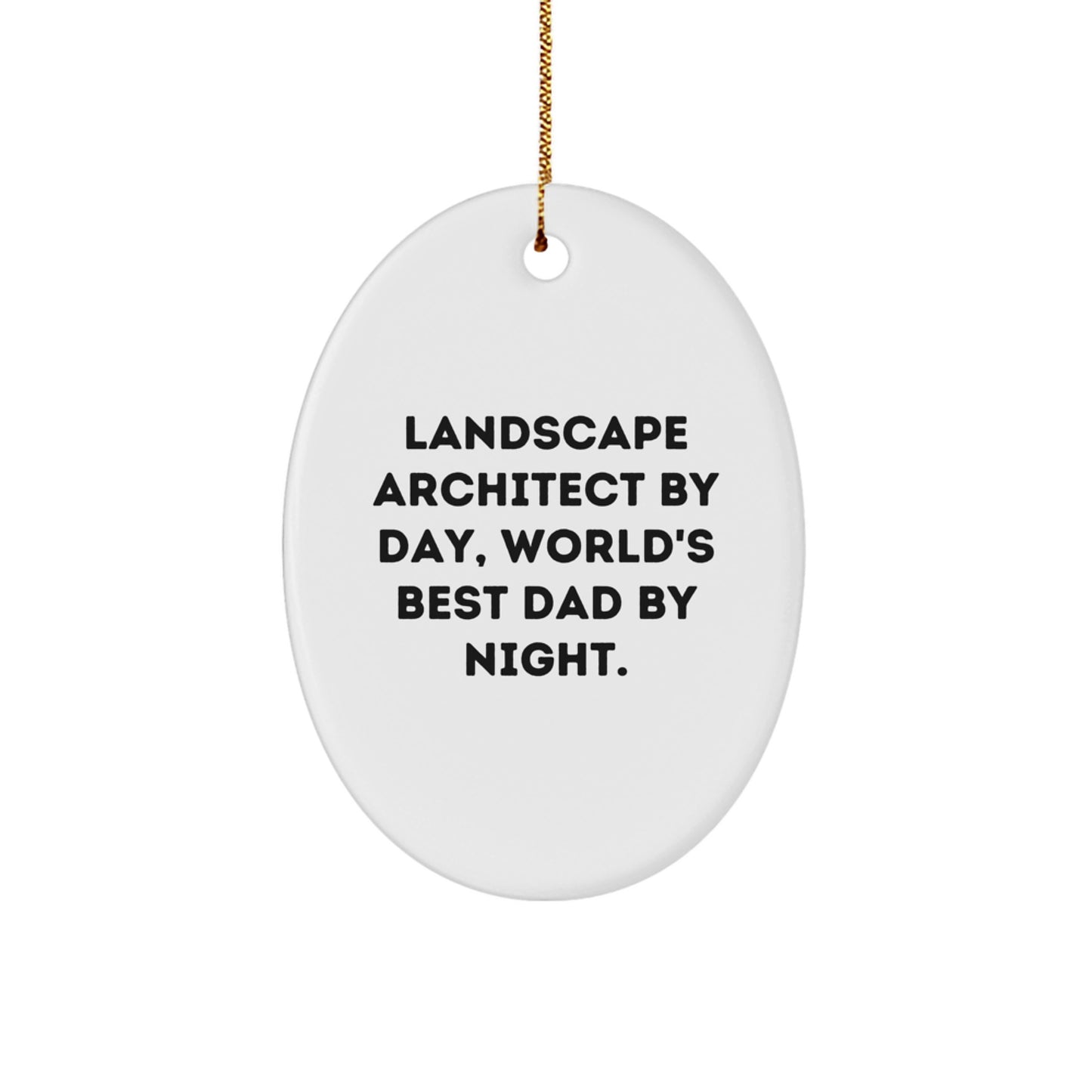 - This oval ornament is the ideal gift for landscape architects who are also amazing dads, featuring a funny quote that's sure to bring a smile to their face. Made from sturdy MDF with a high-gloss plastic finish, it's lightweight and resistant to breaking, making it perfect for households with children or pets. Ships with a festive gold cord for easy hanging, perfect for stress-free decorating.