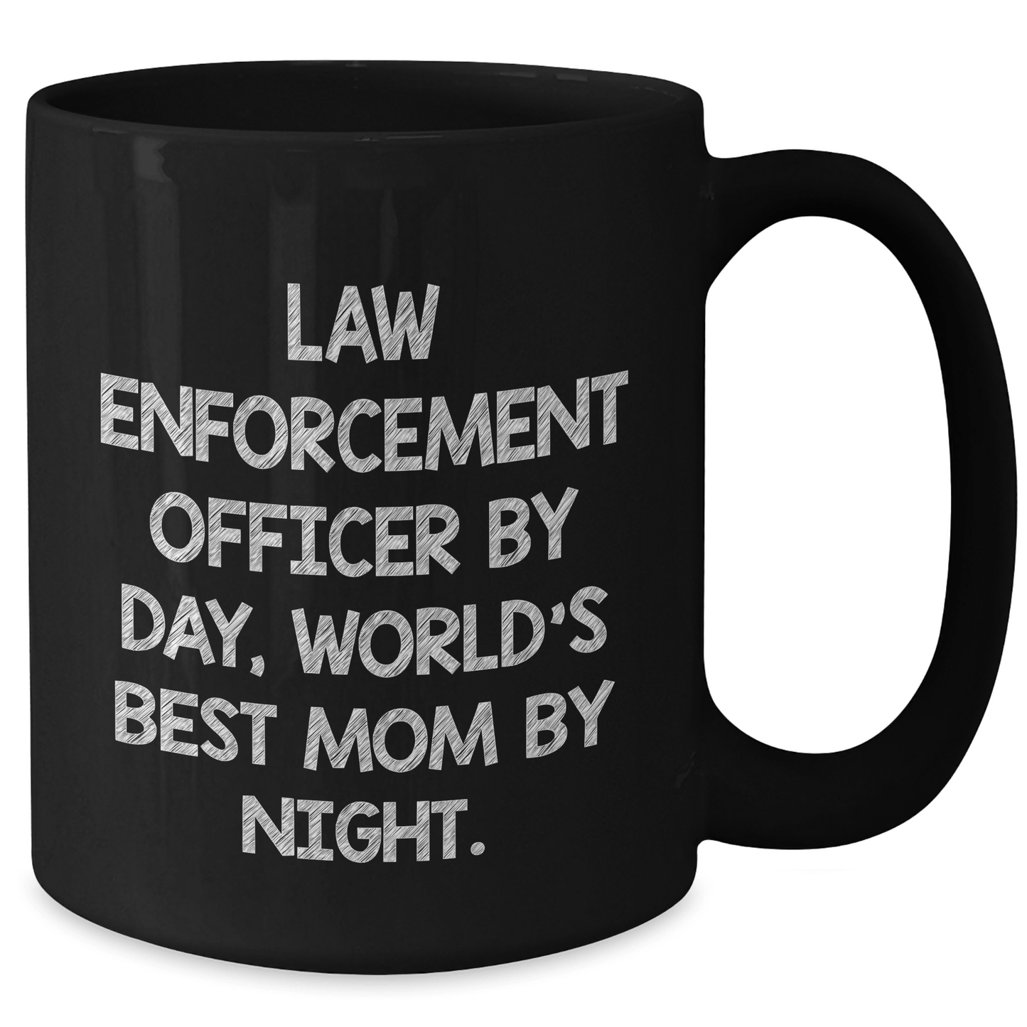 • Funny quote 'Law Enforcement Officer By Day, World's Best Mom By Night.' adds humor and personality to your morning coffee routine