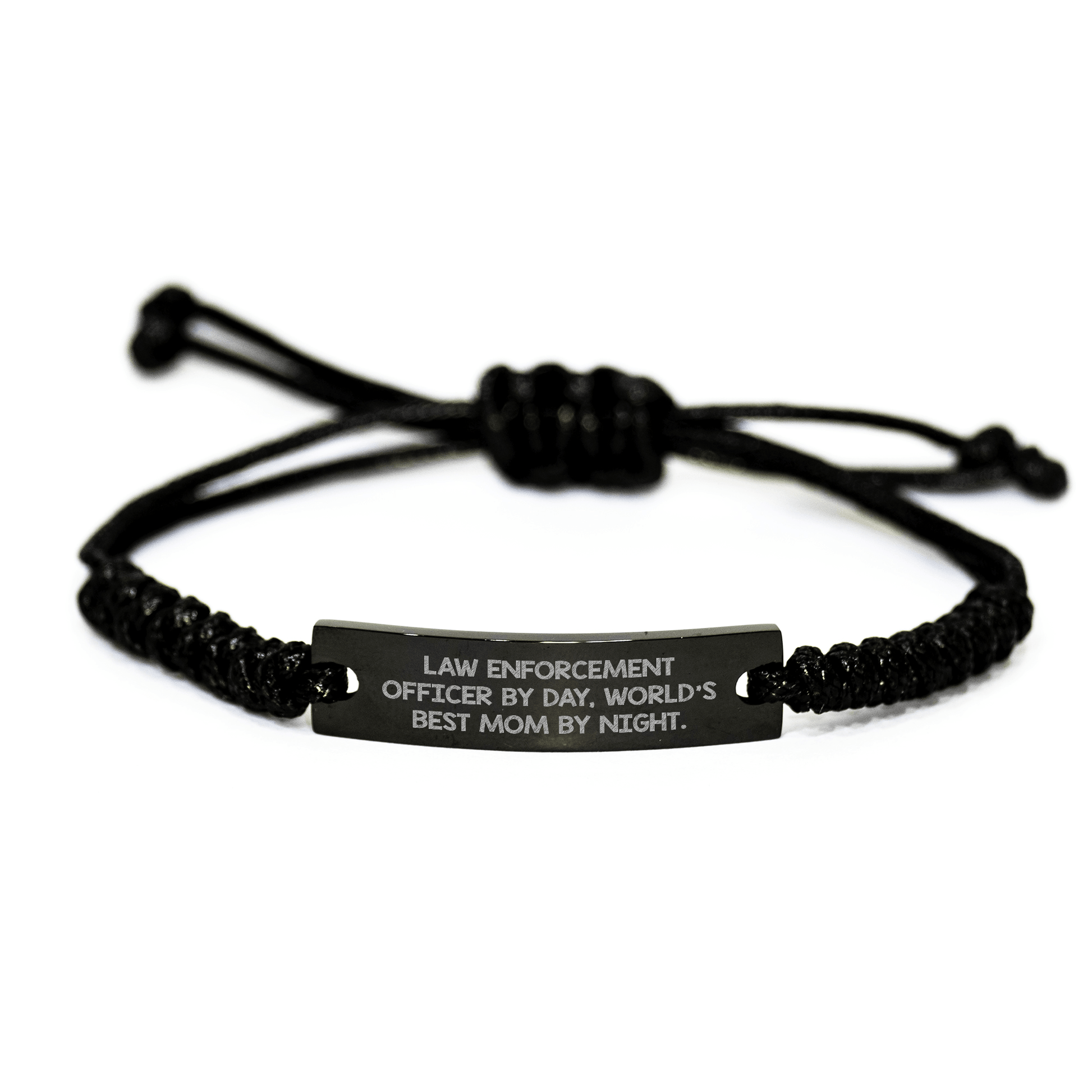 - This rope bracelet is the perfect way to show your appreciation for the law enforcement officer in your life with a funny quote that reads 'Law Enforcement Officer By Day, World's Best Mom By Night.'