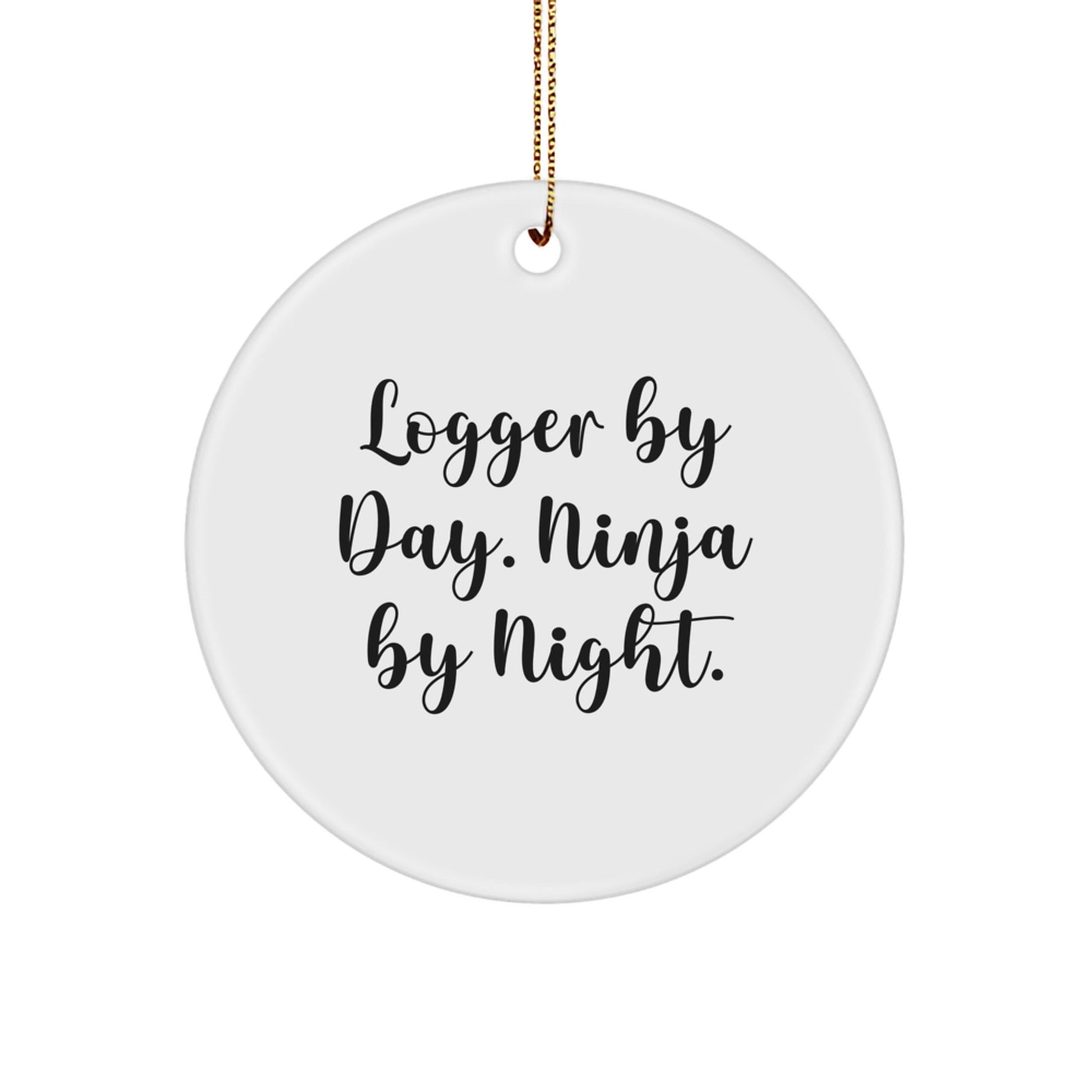 - Make a statement with this humorous Logger By Day. Ninja By Night. Circle Ornament, perfect for any Logger's Christmas tree or decoration