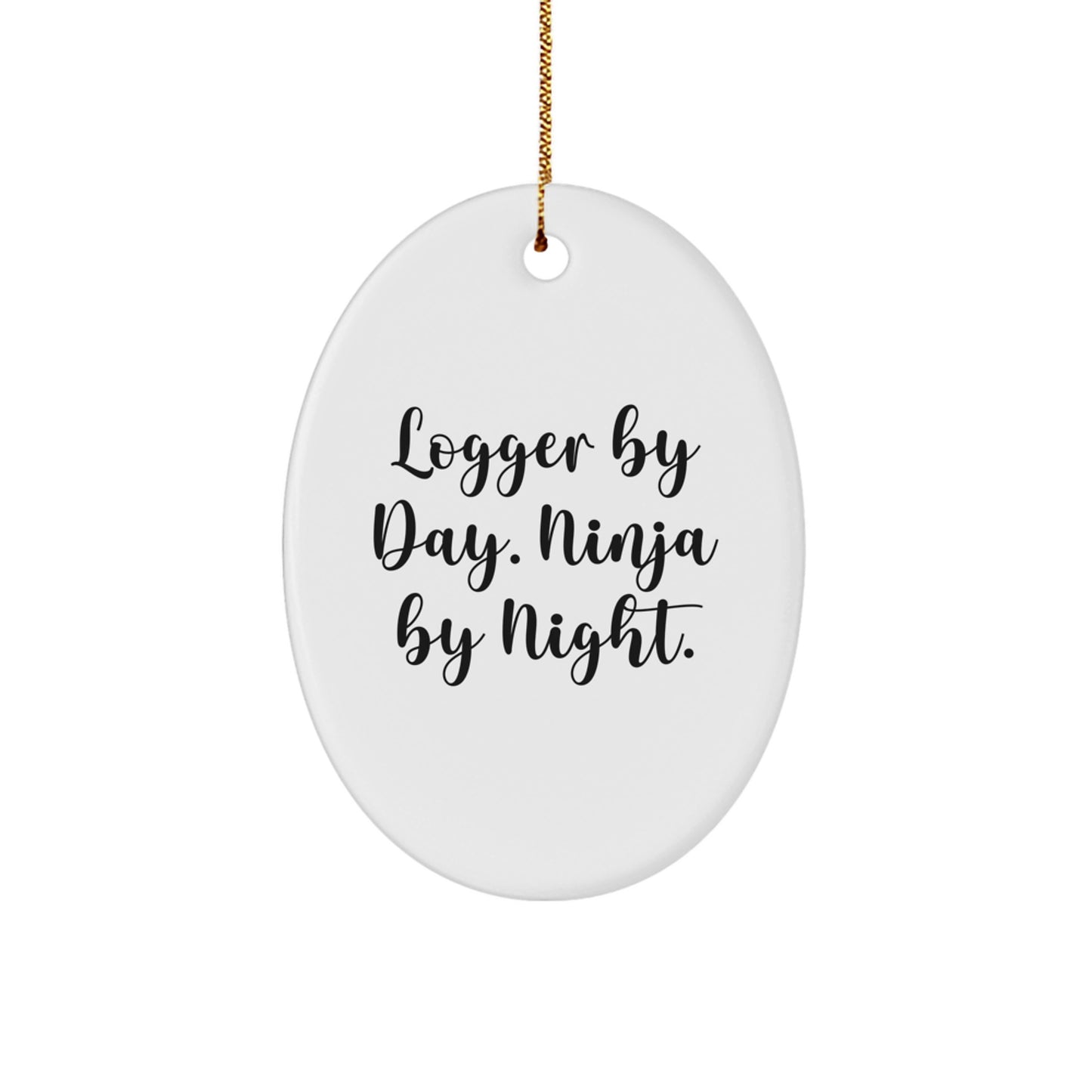 - This Logger Oval Ornament is the ideal gift for any Logger enthusiast, with its funny quote 'Logger By Day. Ninja By Night.' that's sure to bring a smile to their face