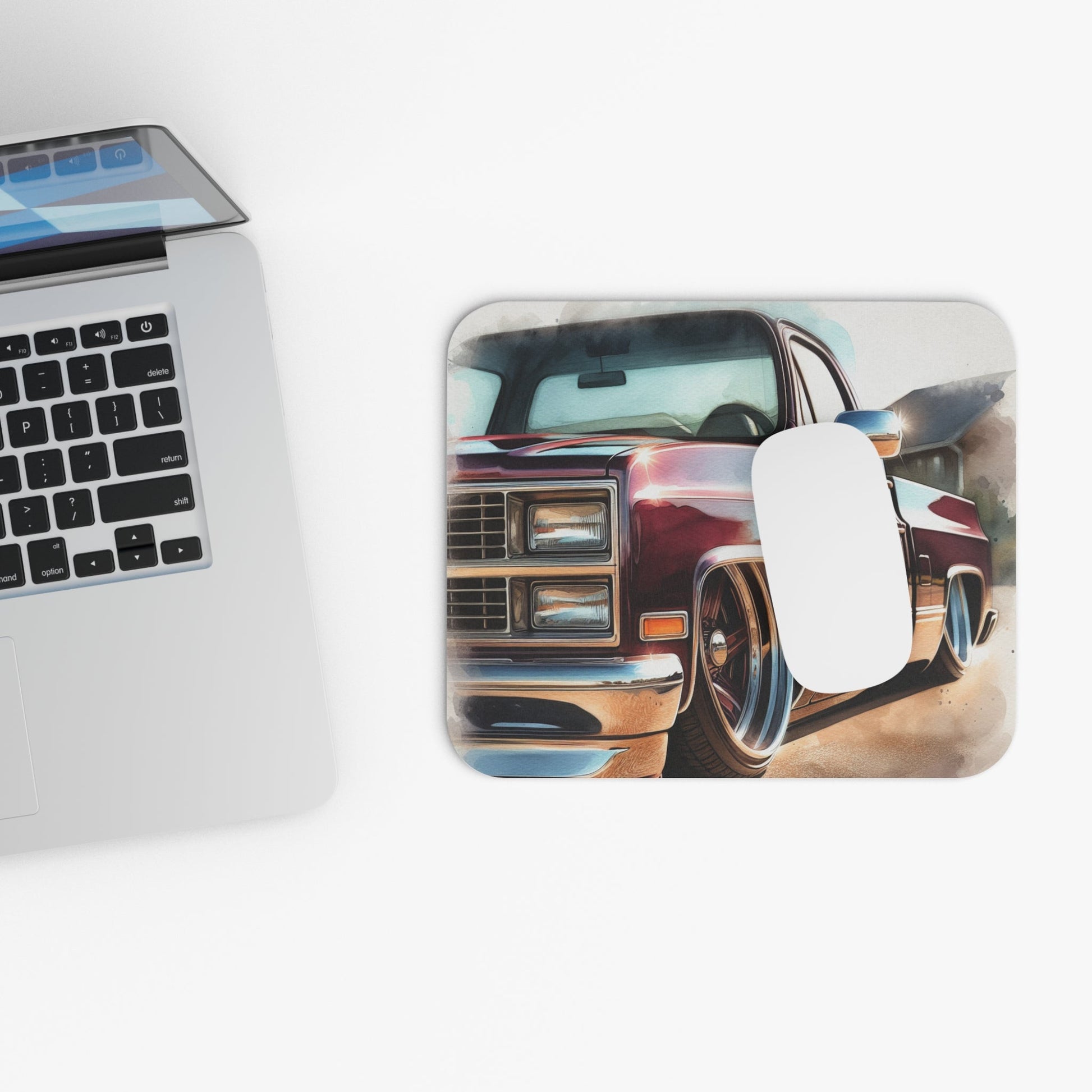 This Lowered 1987 Chevy Truck Mouse Pad features bright and intense colors, providing a smooth surface for effortless mouse gliding. The rubber base keeps it firmly gripped to the desk, suitable for car enthusiasts and vintage truck lovers. Perfect for home offices, workspaces, and as a gift for birthdays, Father's Day, or Christmas.