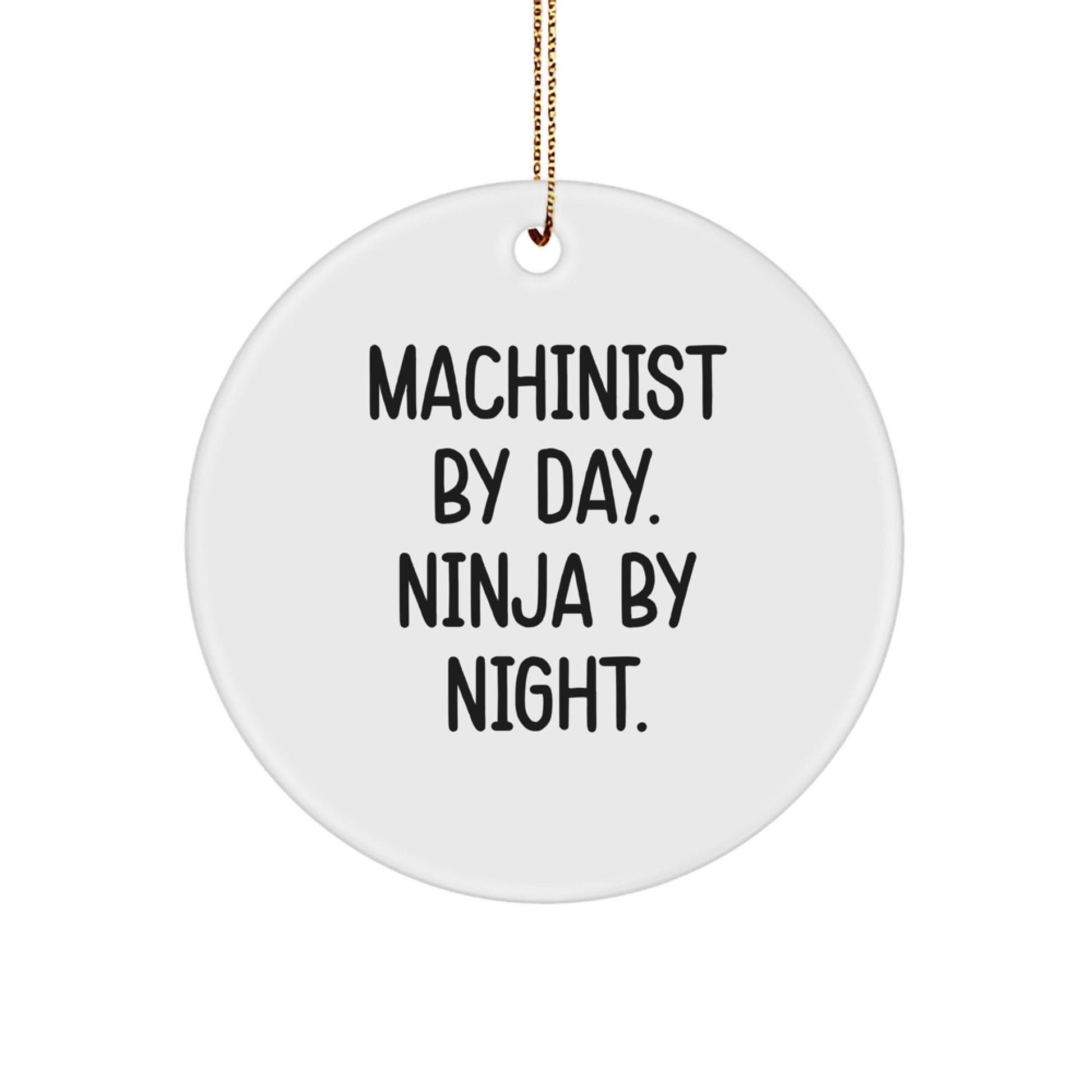This is a thoughtful gift for a machinist from a friend, coworker, or family member. The funny quote 'Machinist By Day. Ninja By Night.' adds a touch of humor and personality to the ornament. It's a unique and thoughtful gift for any occasion, including Christmas.