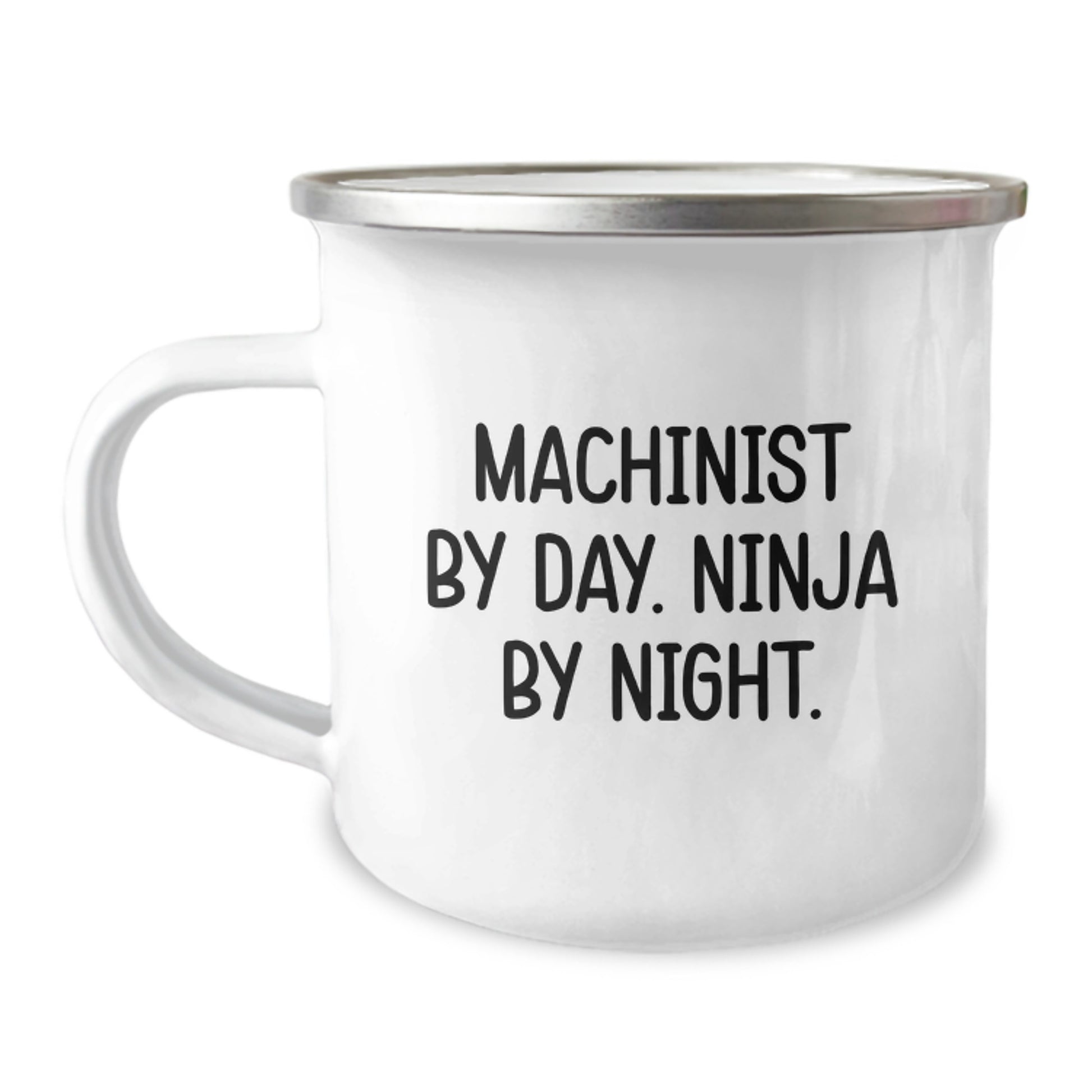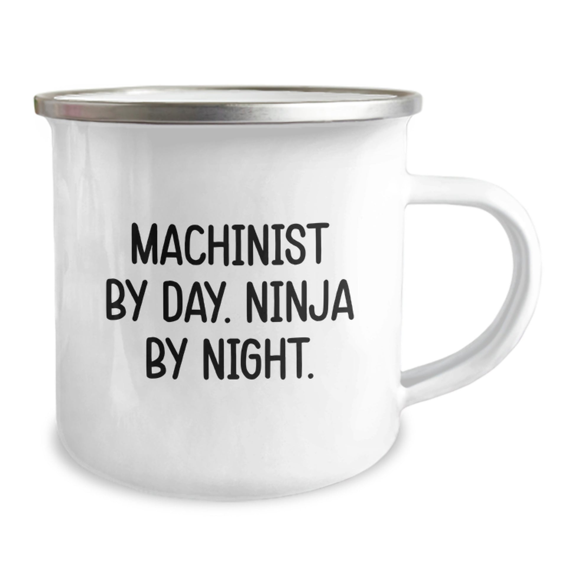 - Whether you're a machinist by day or a ninja by night, this camping mug is the perfect companion for your outdoor adventures. With its 12 oz capacity, you can enjoy your favorite hot or cold beverages on the go. The stainless steel construction and enamel finish ensure durability and ease of cleaning. Plus, the permanent printing won't fade after washing, so your machinist-inspired design will remain vibrant for years to come.