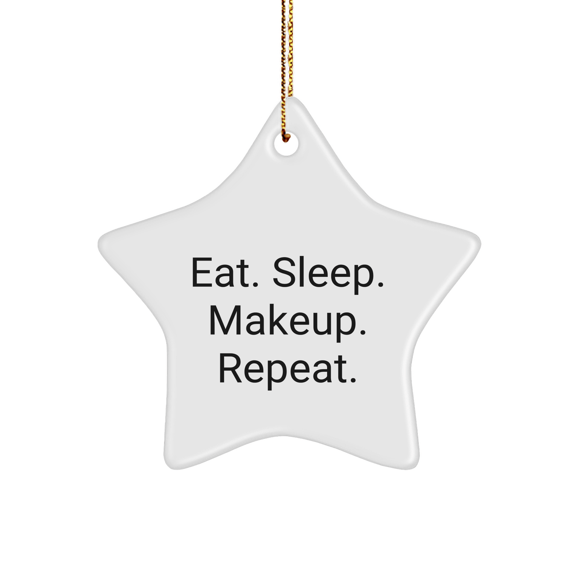 Whether you're decorating your home, giving a gift, or just want to add a touch of makeup magic to your space, this star ornament is the perfect choice. So why wait? Get your Eat. Sleep. Makeup. Repeat., Christmas Unique Gifts today and spread the love for makeup!