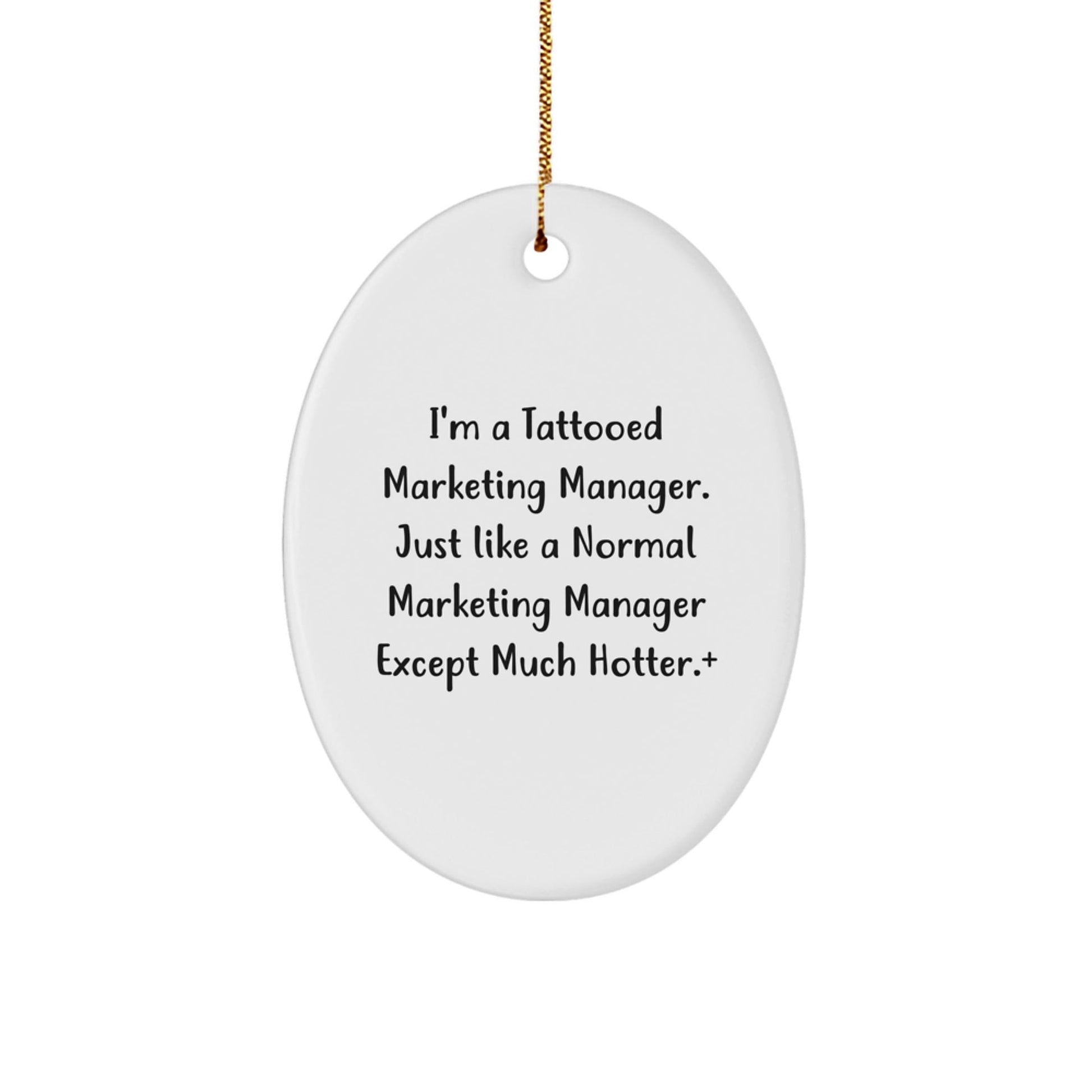 - This 'I'm A Tattooed Marketing Manager' Oval Ornament is a unique and thoughtful gift for any Marketing Manager, perfect for showing off their personality and sense of humor.