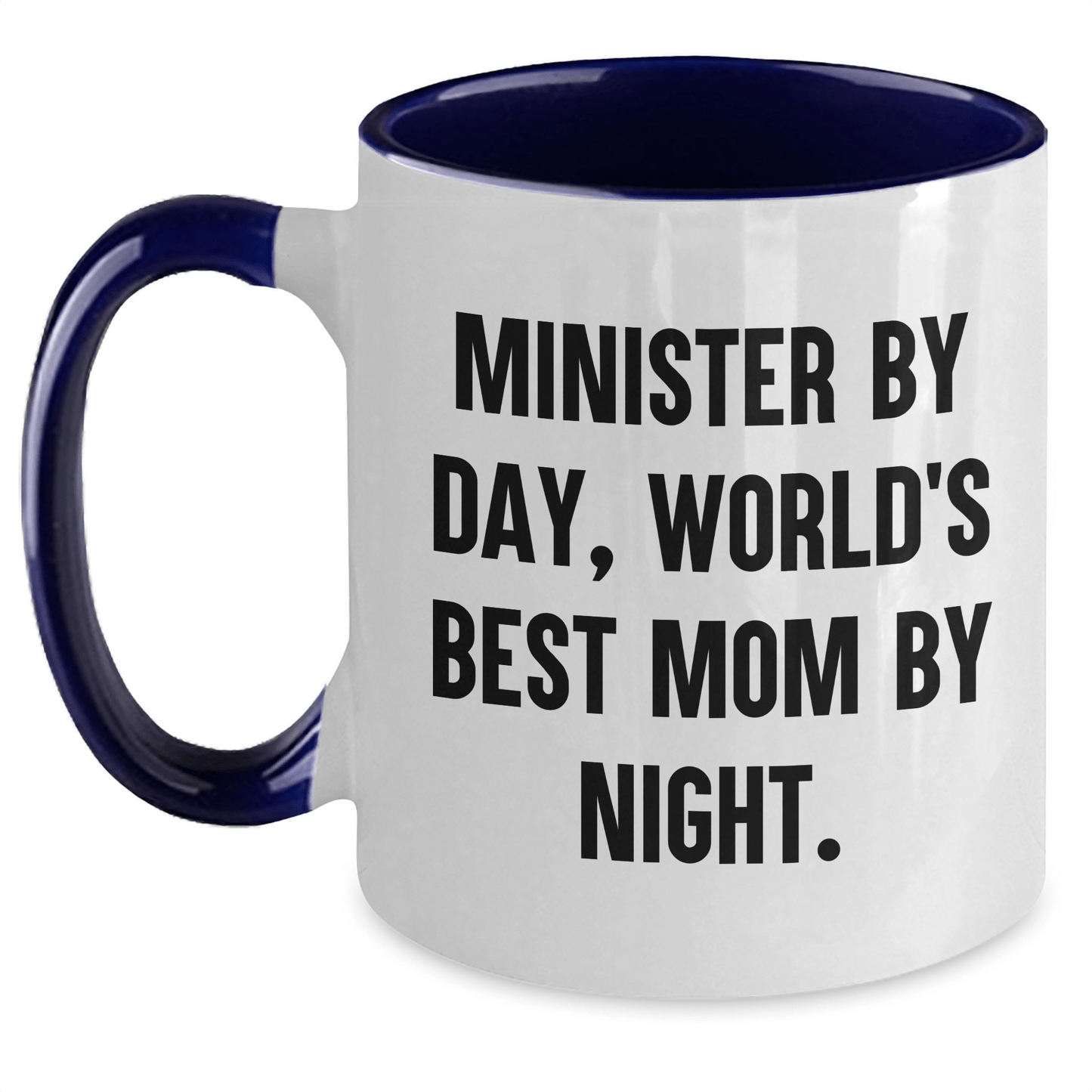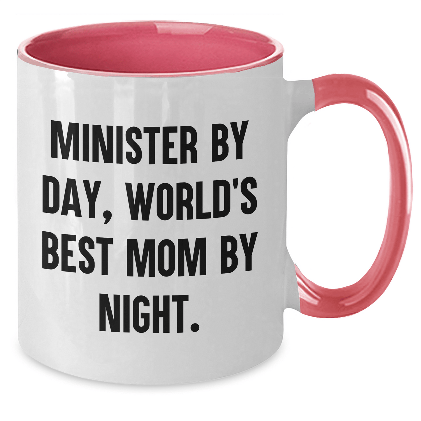 - A unique and hilarious gift for the Minister in your life, featuring the quote 'Minister by Day, World's Best Mom by Night'.