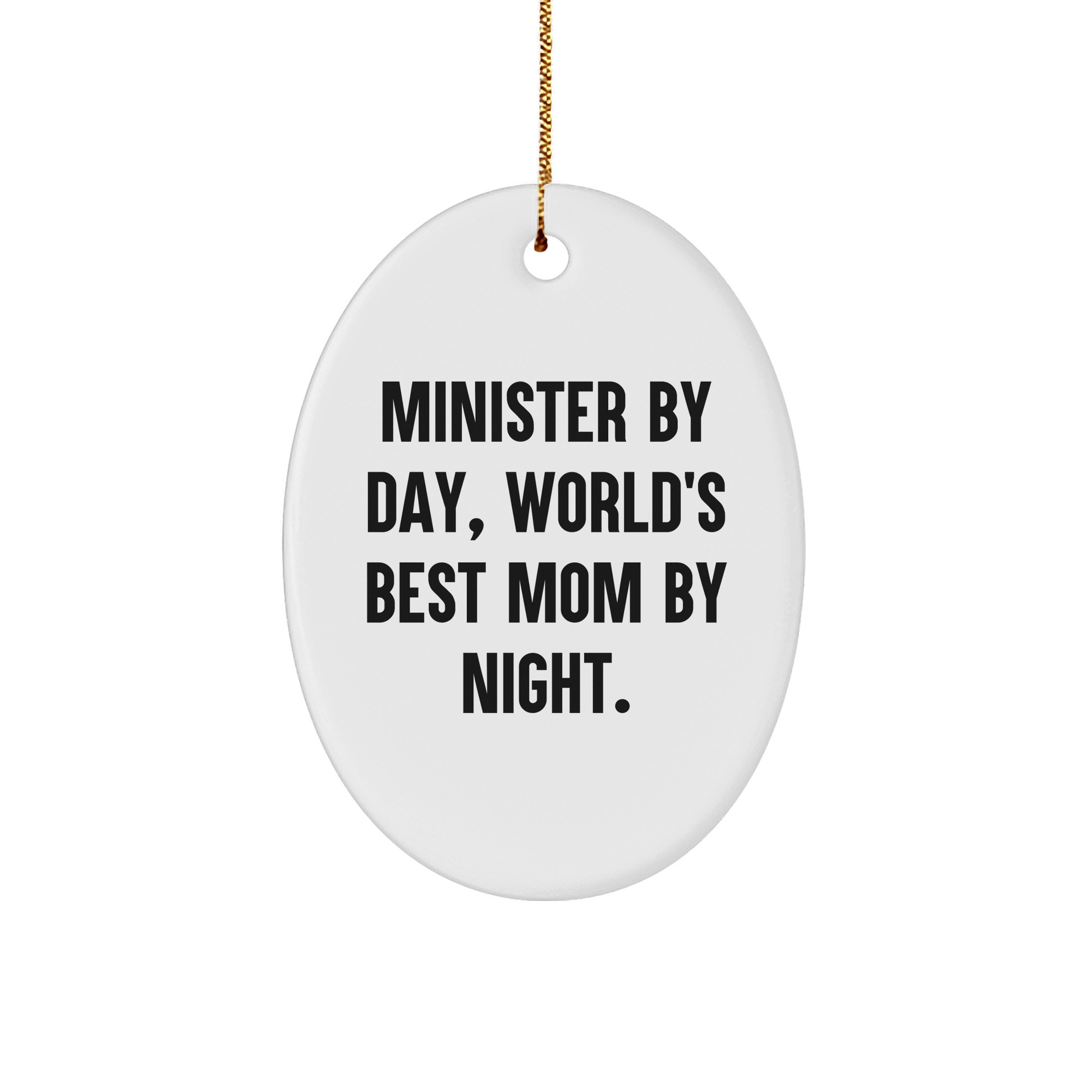 This ornament makes a great gift for any occasion, whether it's Christmas, birthday, or just because. And with its easy-to-hang design, it's perfect for decorating your home or office. So why wait? Order your Minister oval ornament today and show your Minister that you're the world's best mom by night!
