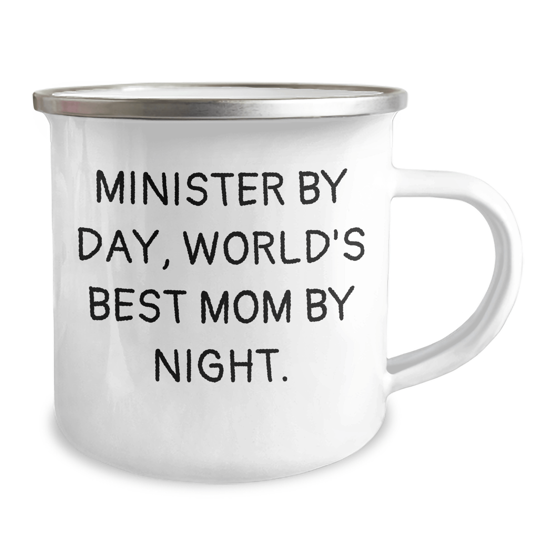 - A great way to express your minister's love for camping and the outdoors, this 12 oz camping mug is designed to keep hot beverages hot and cold beverages cold for hours. Made from high-quality stainless steel with a permanent enamel finish, it's built to last and withstand the rigors of frequent use. The quote 'Minister By Day, World's Best Mom By Night.' adds a touch of personality to the design, making it a unique and thoughtful gift for any minister who loves the great outdoors.